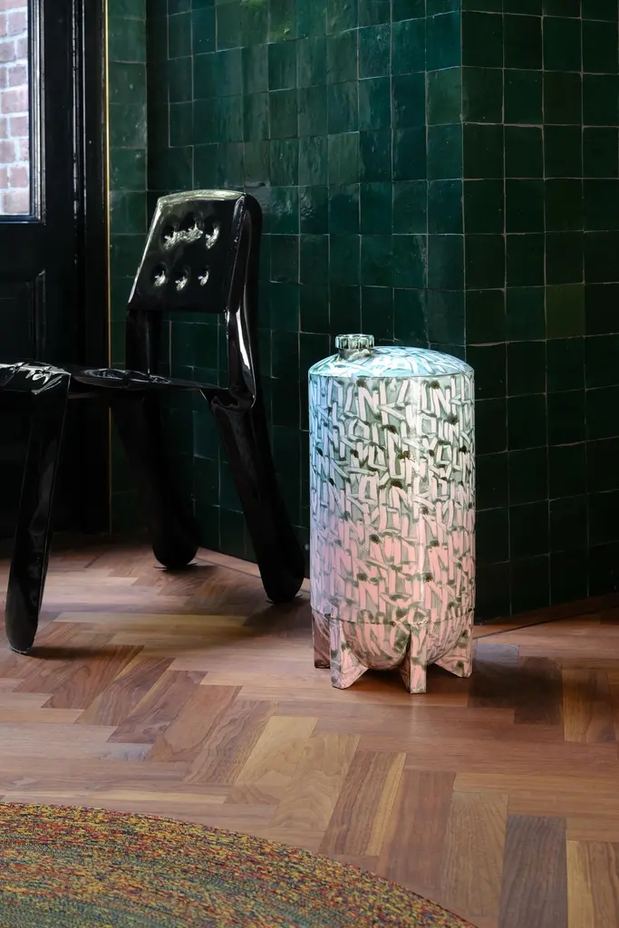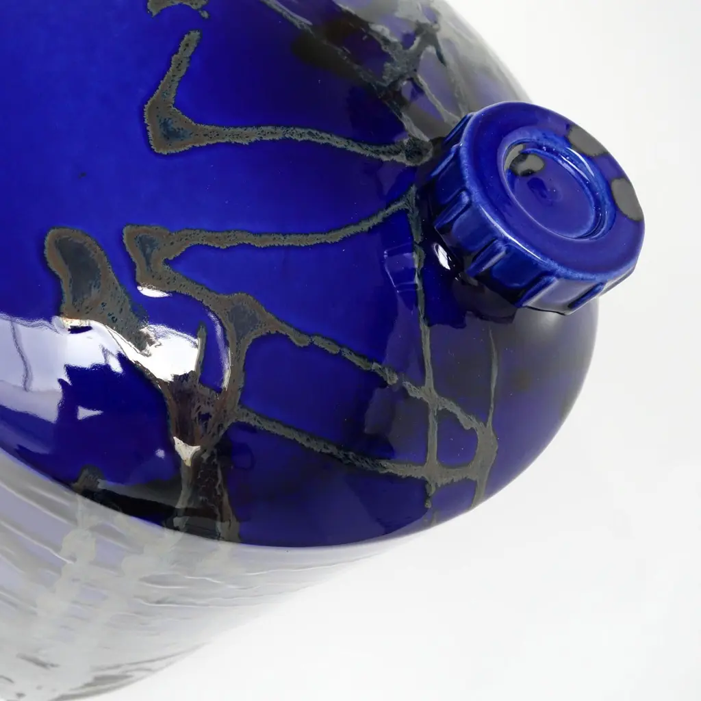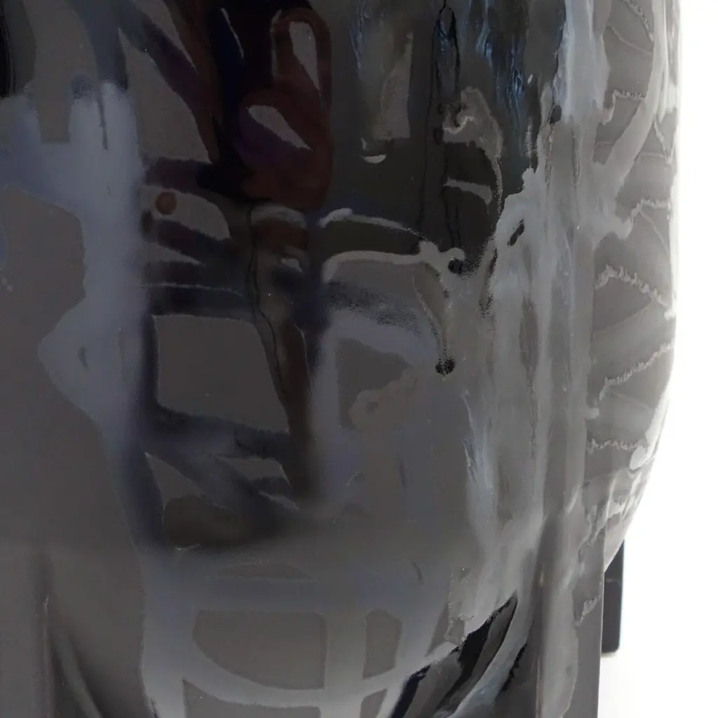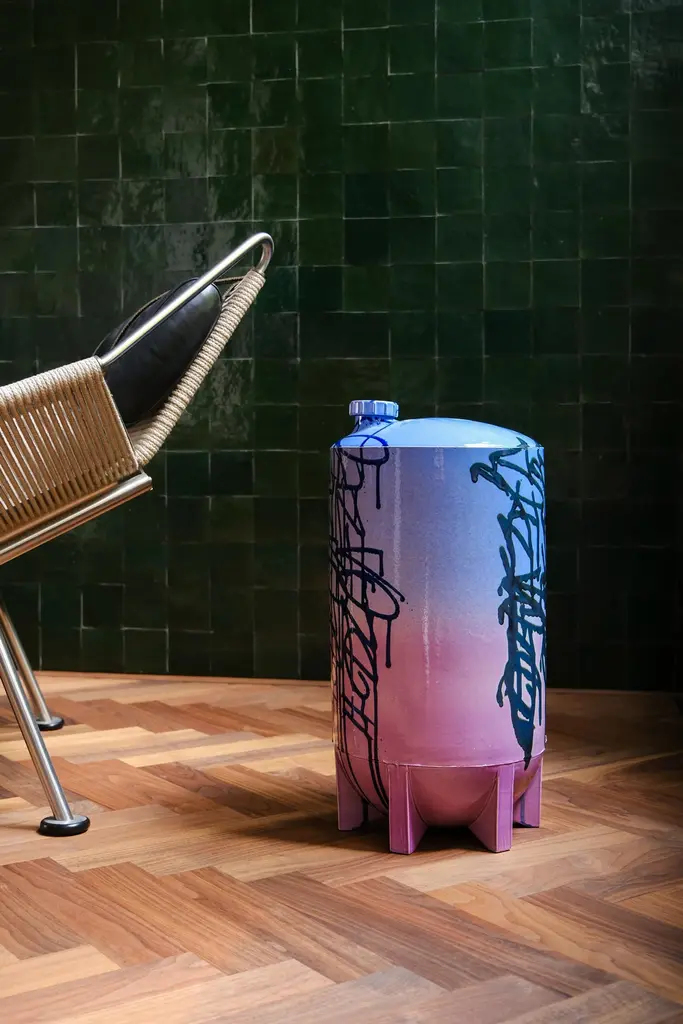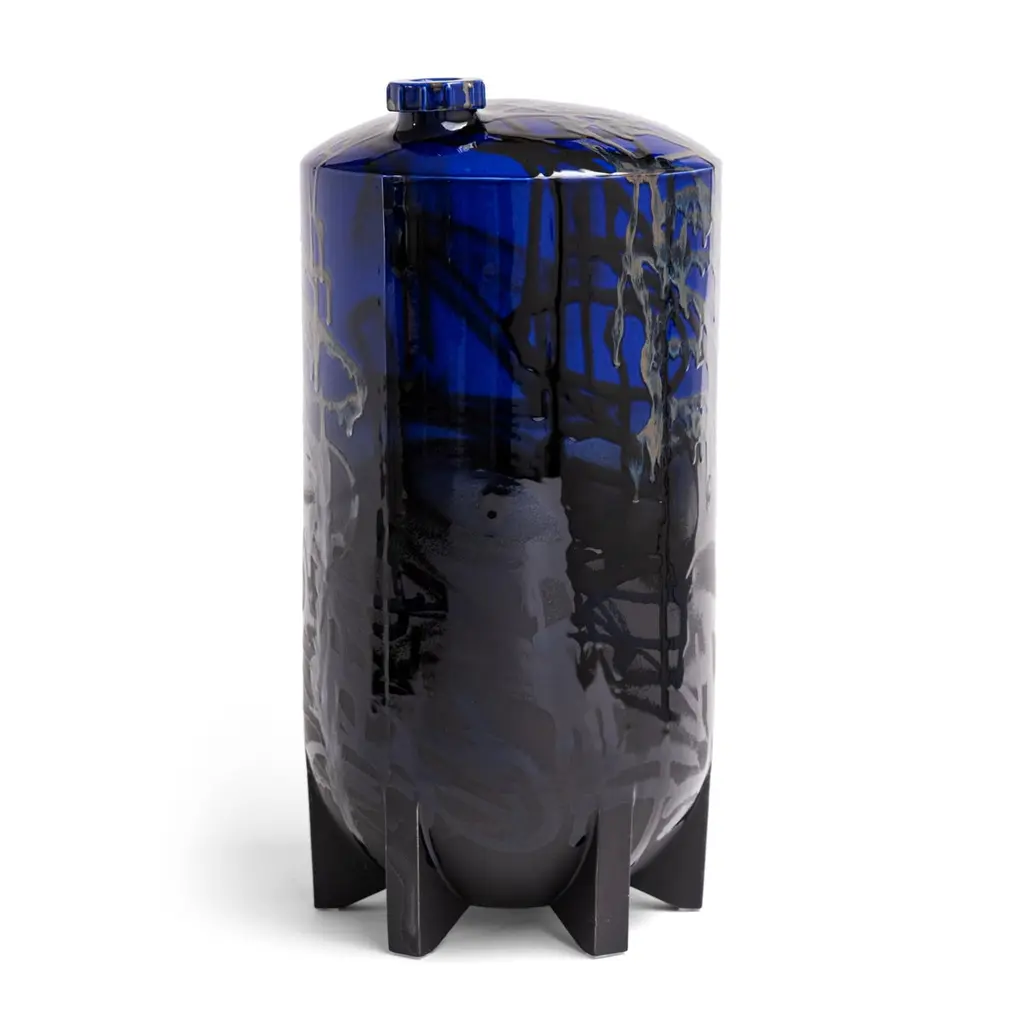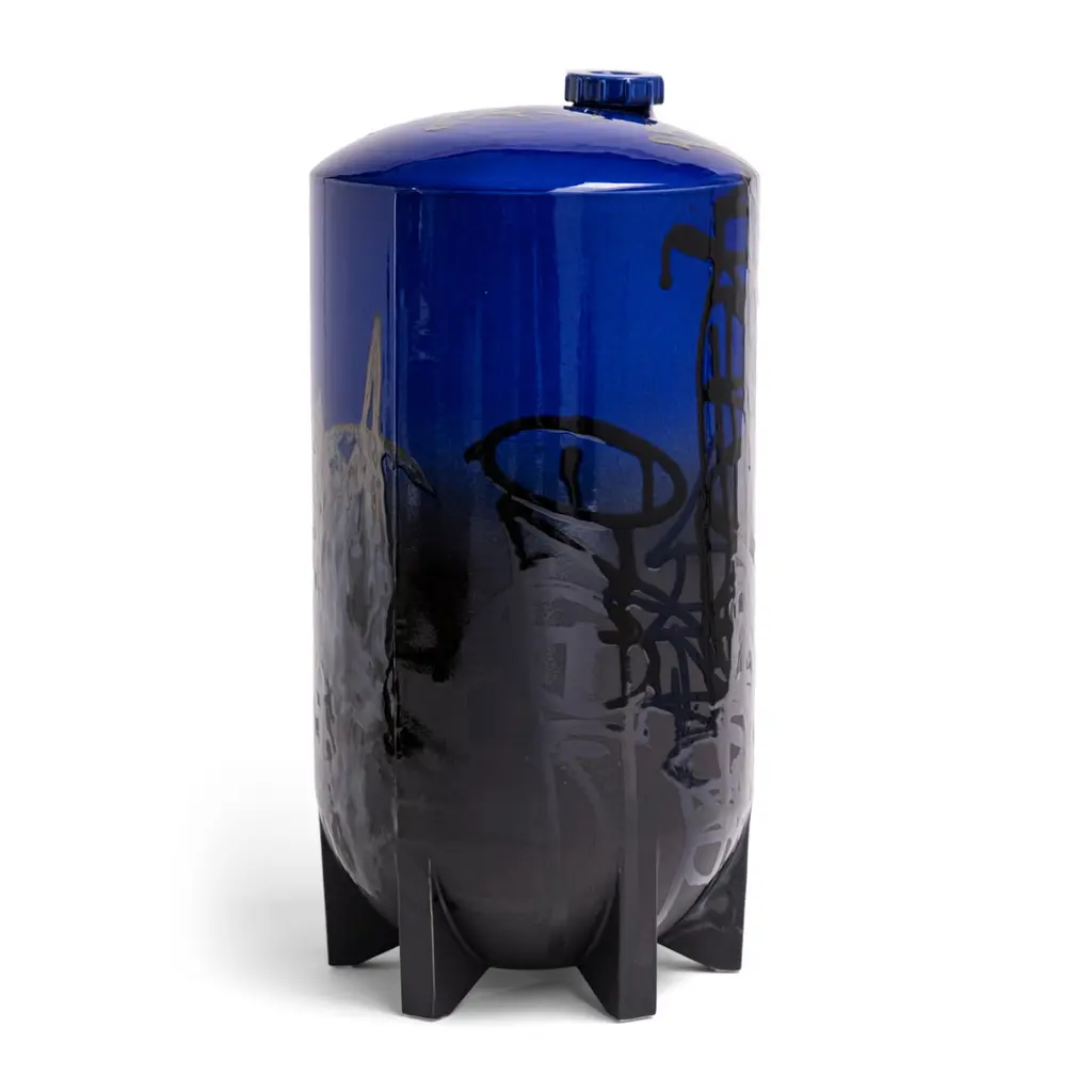 Under pressure 3 by Yuri van PoppelDimensions: D 27 x H 55 cmOne of a kind.Earthenware, layered ceramic glazes, various colours.Handmade and spray-painted by hand by SunkOne. Removable lid.Everlasting graffiti spray-painted with ceramic glaze.Under Pressure pays homage to the rich history and culture of graffitiwriting, referencing both a writer’s tools and targets at the same time.From the cap of the first marker used to get up, to the fire extinguisherused for getting up higher.An echo of structures and machinery, industrial wastelands in the orangenight light. Powerful memories and sensations poured into a robust ob-ject -and a refined work of art. A unique handmade earthenware object,spray-painted by hand in various layers of ceramic glaze.Glazed Graffiti explores the aesthetic value of vandalism. A post-graffitiproject by SunkOne, aiming to eternize graffiti-writing by trespassing intoa new artistic medium.Glazed Graffiti was born out of the desire to write graffiti that lasts forever.To make this shift from ephemeral to eternal, graffiti writer SunkOne hadto cross the boundaries of traditional street graffiti. By changing the con-text of street tagging he wants to further explore the aesthetics of whatis often labeled as vandalism. To him, the tactility, opacity and shine ofceramic glaze mirrored the mesmerizing appearance of wet paint and ink,so he set out to engineer a spray can that would enable him to paint withceramic glaze without losing what he loves most about graffiti: the rawenergy and the rudimentary lines. With these air pressurized spray canshe is free to move around ceramic objects and surfaces and capture thepowerful visual language of graffiti writing in imperishable works of art.About SunkOneSunkOne (Yuri van Poppel, 1975) is a Dutch designer, contemporary artistand graffiti writer. Since drawing was his way to express himself as a child,he was instantly hooked when graffiti came from New York to Europe inthe mid-eighties. Seeing his name up written in stylized letters was anextremely powerful feeling to him at that age -and it still is. After studyingart history and design in the UK and The Netherlands, he worked in designand advertising winning multiple awards for his creative work.Simultaneously he participated in various national and internationalprojects and exhibitions with his graffiti work. With Glazed Graffiti,he is the first ever to spray ceramic glazes using custom built spray cans,capturing the raw energy of street writing in a new artistic medium.