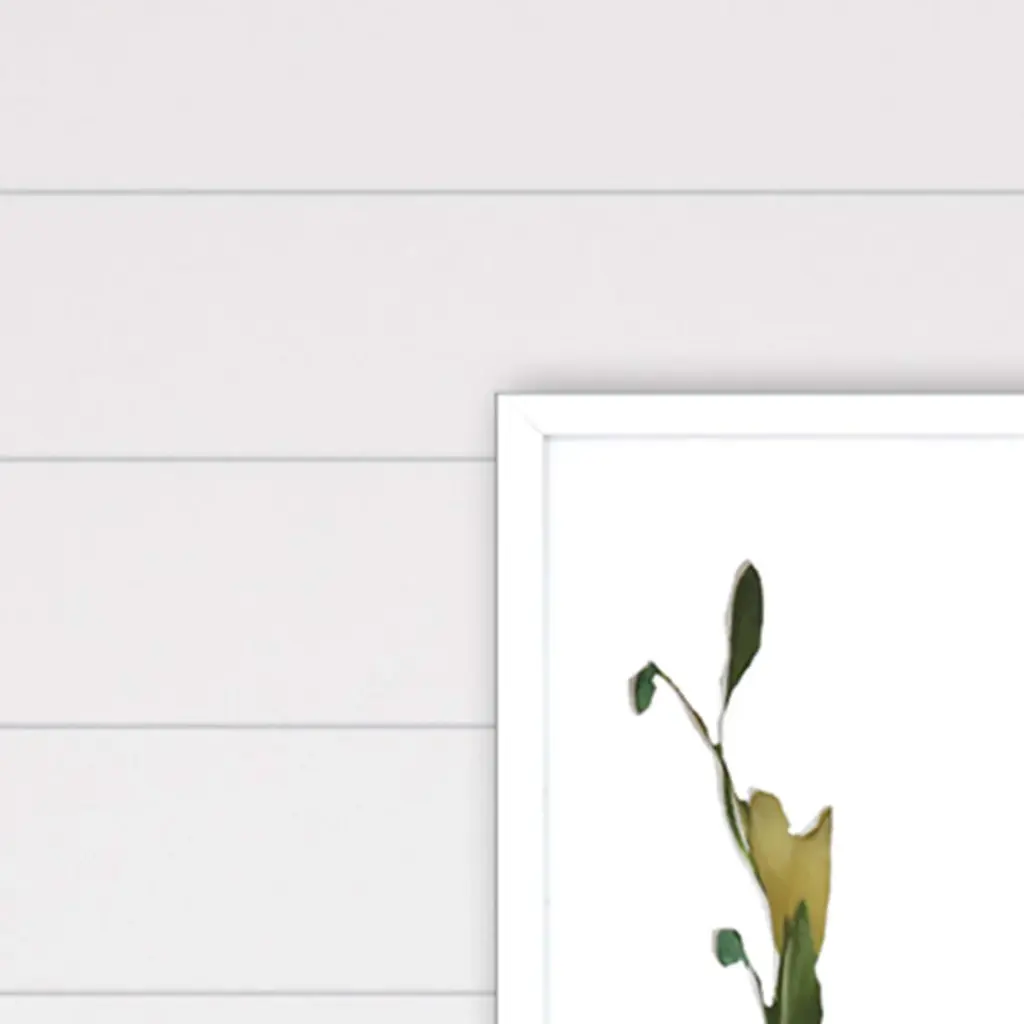 Exclusive mixed media shadow box with hand painted acrylic overlay. Framed in a lacquered white wood shadow box style molding.