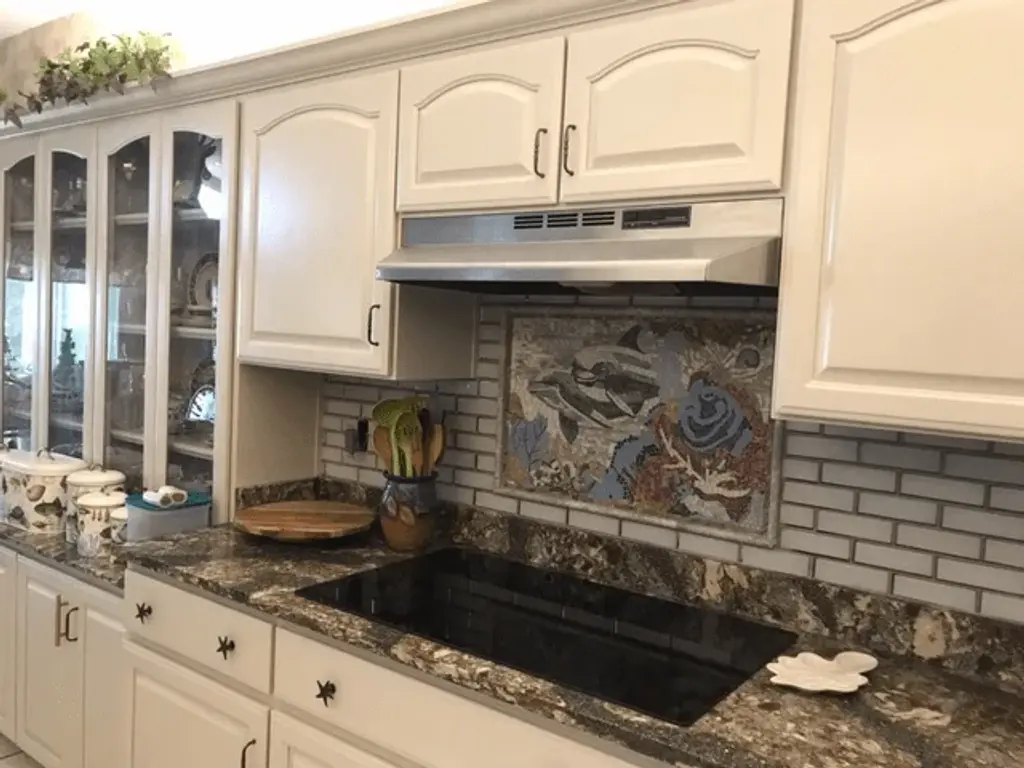 Transform your space into an aquatic paradise with our Underwater Sea Life Mosaic. This stunning handmade mosaic showcases the intricate beauty of underwater life, crafted meticulously from premium quality natural stones and hand-cut tiles. Each piece is carefully selected to create a vibrant, eye-catching design that captures the essence of marine elegance. Imagine this exquisite mosaic as a focal point in your home or business. It’s not just a decorative item; it's a versatile statement piece that elevates the ambiance of various settings. Perfect for spas, this mosaic adds a touch of tranquility and sophistication, creating a serene environment where relaxation is paramount. Incorporate it into the design of your swimming pool, and watch as the enchanting colors and details mesmerize all who swim or lounge nearby. This luxury stone mosaic is an embodiment of artisanal craftsmanship—each tile painstakingly cut and arranged by skilled artisans, ensuring no two mosaics are exactly alike. The use of natural stone means you are bringing a piece of nature into your space, enhancing the organic feel and aesthetic of your surroundings. Among the captivating hues are the luminous Brown Quartz and the radiant Dark Red Quartz, which add warmth and depth with their jewel-like glow. The shimmering Dark Blue Quartz, Prisma Blue Quartz, and Aqua Blue Quartz offer prismatic and crystalline brilliance, evoking the ocean’s cool and scintillating depths. Complementing these are the delicate Light Purple Quartz tones, lending a soft, translucent brilliance that captivates the eye. Durable and resilient, this mosaic is designed to withstand the elements, shining beautifully both indoors and outdoors. Whether used as a wall piece, unique backsplash, or accent in your garden, the Underwater Sea Life Mosaic stands as a testament to enduring beauty and artistic expression. Invite the charm of the ocean into your life with this one-of-a-kind mosaic. It’s more than just decor; it's an invitation to explore the wonders of sea life right from your own space. Embrace the tranquil vibes and let the colors of the underwater realm inspire your day-to-day living. Don’t miss out on this opportunity to enhance your environment with a piece that embodies the spirit of the sea.