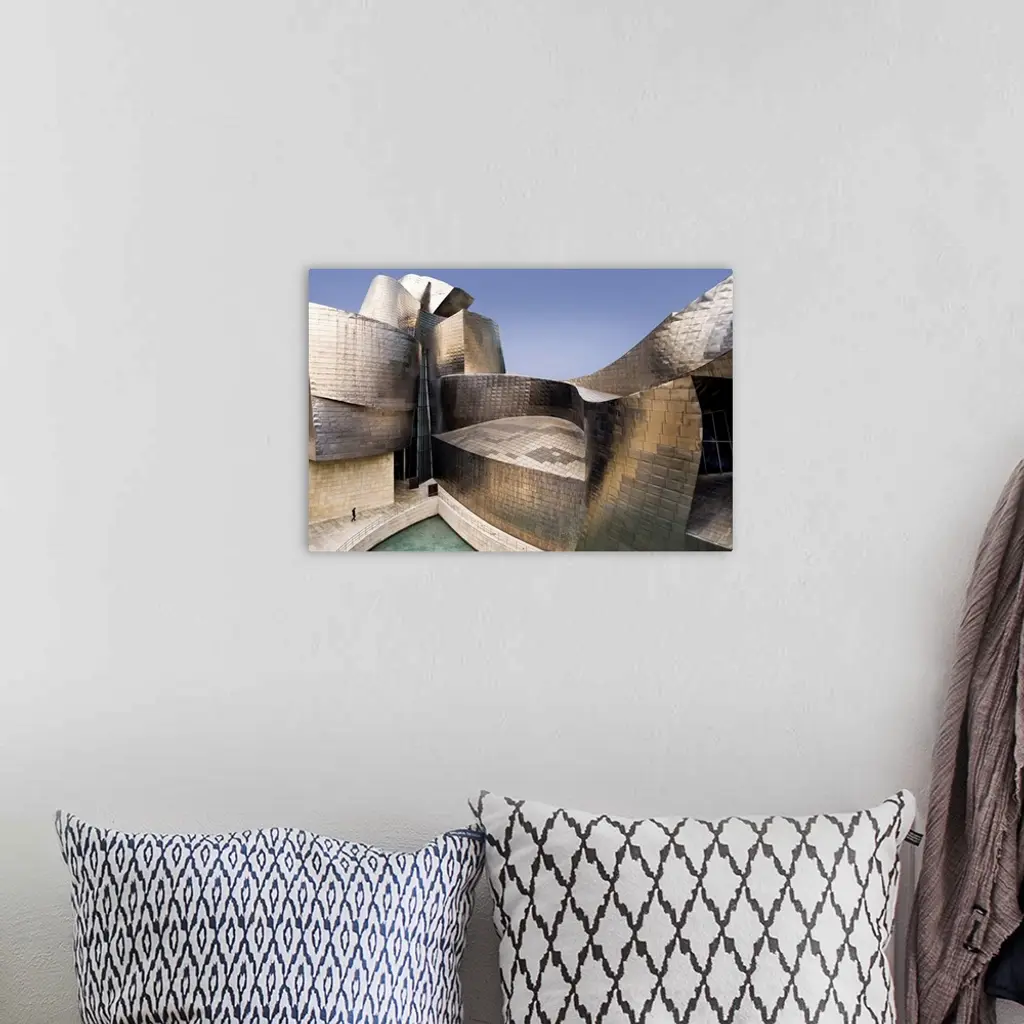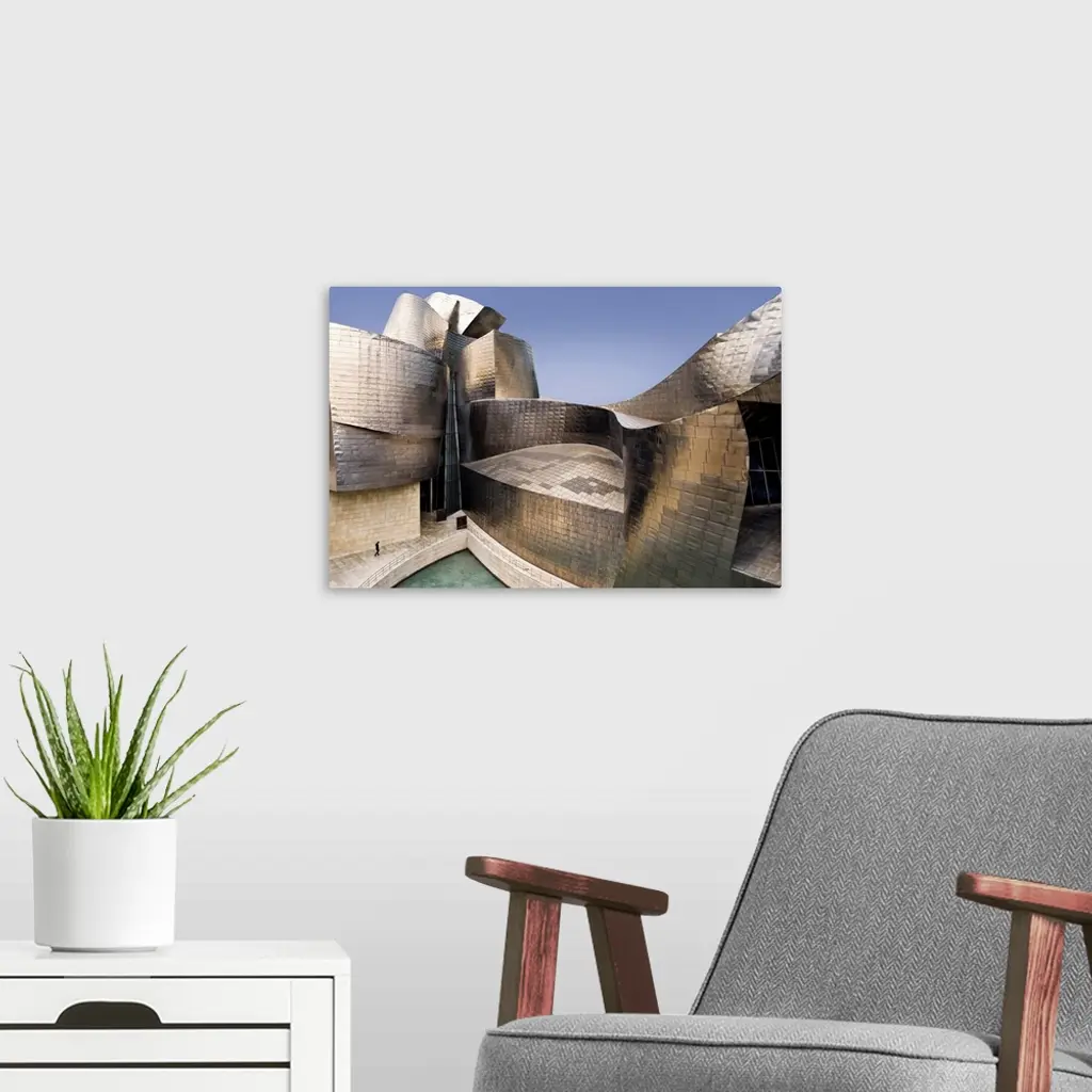 The impressive curves of the titanium and glass walls of the Guggenheim Museum in Bilbao, Spain, designed by Frank Gehry.
