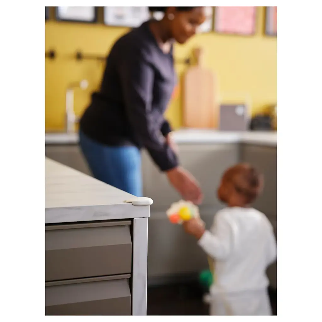 UNDVIKA Corner bumper - white. With UNDVIKA corner bumpers you can easily reduce the risk of your child getting hurt on the sharp corners of tables and cabinets. In order to achieve optimal adhesion the corner bumper should be left with no weight on for at least 48 hours. Only for indoor use.