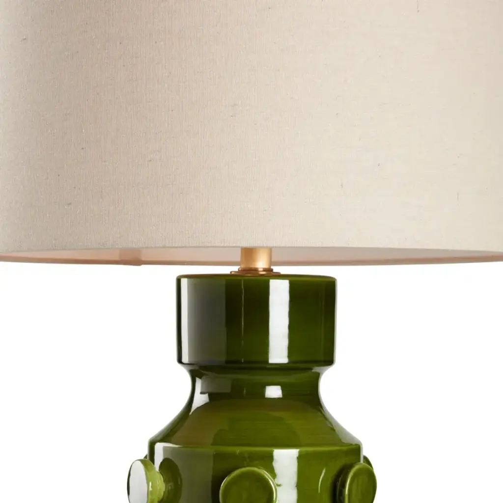 The Ungaro Lamp brings bold texture and modern charm to any interior. Made in Italy from ceramic, its rich green glaze and raised circular detailing create a striking silhouette with playful sophistication.
