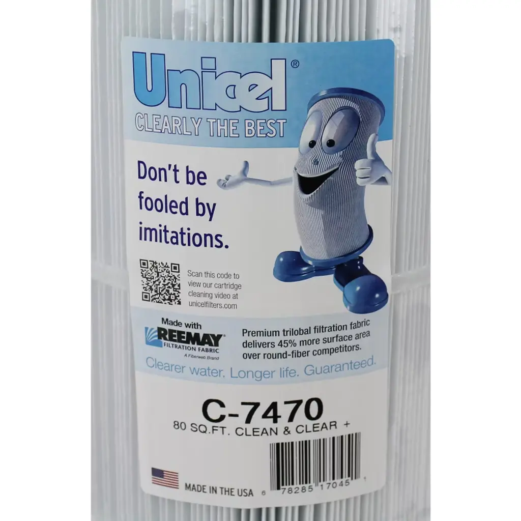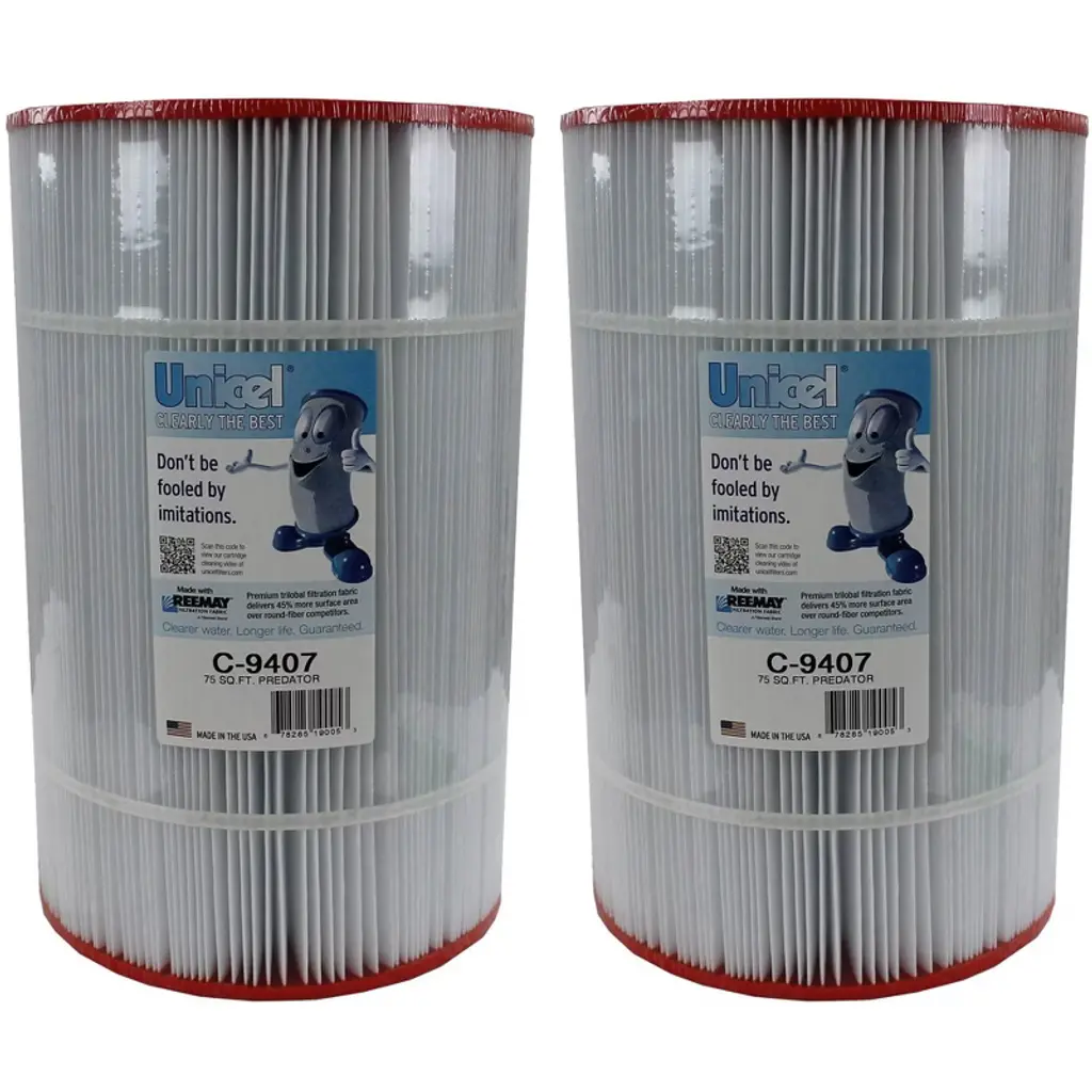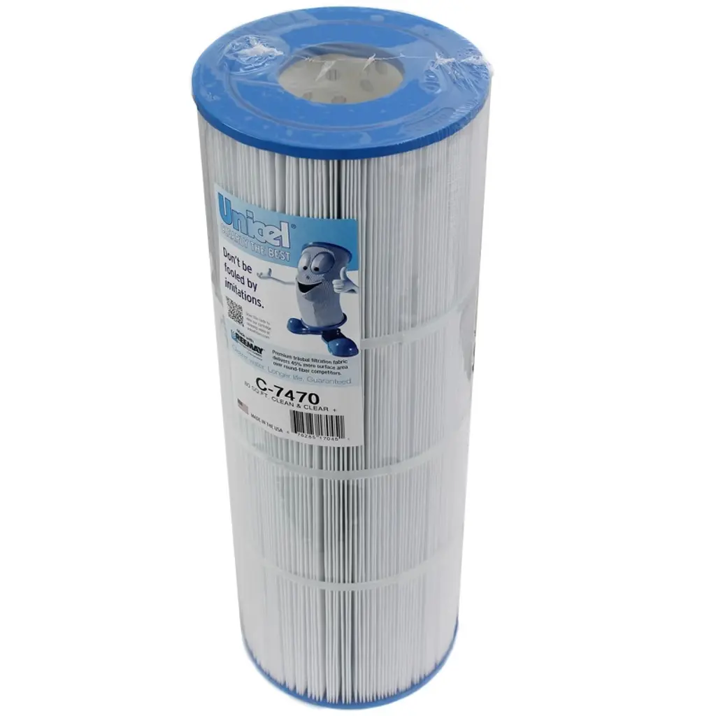 Shake off the summer heat in a cool pool. Make a splash in the cleanest swimming pool in the neighborhood with this Unicel C-7470 Replacement Filter Cartridges. Featuring 80 square feet of 4-ounce basis weight media made of 100-percent polyester Reemay material, each pool cartridge filter ensures high performance and dependable filtration over time. The uniform pleats and Reemay media deliver higher dirt-holding capacity and more time between cleanings. Plus, the smooth surface of the media makes it easy to maintain, resists degradation from chemicals, stands strong under pressure, and holds up to the rigors of multiple cleanings. For optimal lifespan, clean the elements as per instructions and use a soft brush cleaning tool or filter cleaner for easy maintenance. Please note that the cartridge life depends on routine maintenance and pool water chemistry. Change your filter when there is a shorter cycle between cleaning, low water flow rate or high differential pressure, when the media has a tear, or if the center core collapses. The end caps are made of durable plastic that resists damage from chemicals and include a 3-inch ID and open configuration for easy removal and replacement. The C-7470 model of pool filters is compatible with Pentair Pool Products, Pac Fab, and Waterway. This Unicel C-7470 Cartridge Pool Filters is clearly the optimal choice to keep your swimming pool water sparkling.