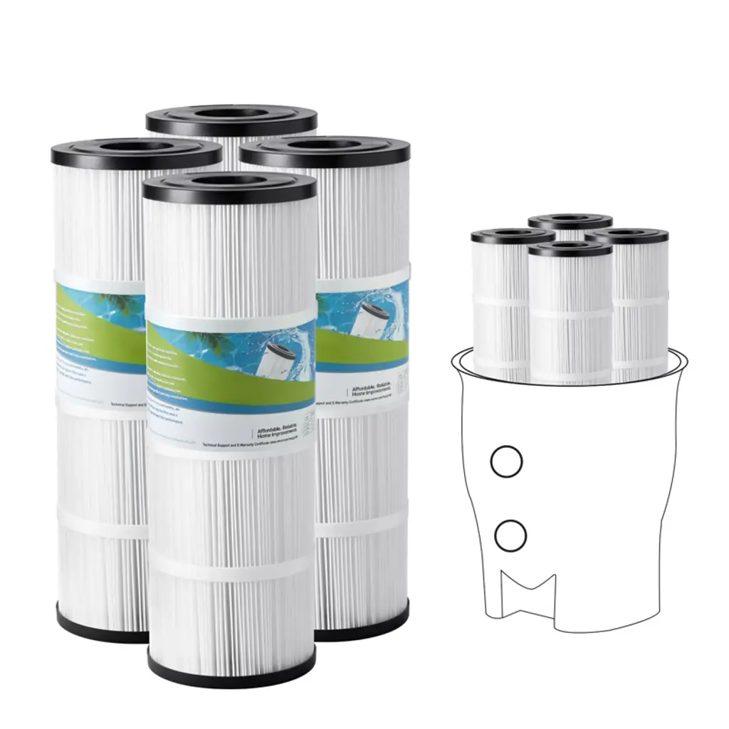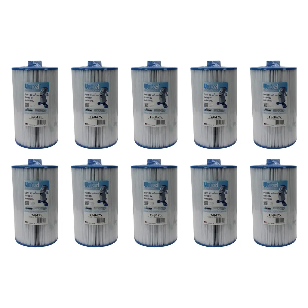 Keep your pool water crystal clear with the help of these Unicel C-8475 75 Square Foot Replacement Pool Filter Cartridges. This Unicel pool filter is made from heavy-duty polyester and is designed to last far longer than cheap alternatives. It features more pleats to improve filtering capacity, and tough urethane end caps assure durability for the life of the cartridge An appropriate cleaning schedule will both help the performance of the filter and keep it from wearing out for longer periods of time. It is not a permanent part and standard use will result in the need for a replacement. Industry's most complete line of replacement filter elements For use with: Coleman Spas (100594 and 3301-2262 models dated after 1992); Maax Spas of AZ (100594) Sharp pleat folds maximize spacing between pleats Tough urethane end caps assure durability for the life of the cartridge Outside diameter: 8 inches Length: 13 inches Top end cap: Open 2.06-inch inside diameter Bottom End Cap: 2-inch male slip fitting Pleat count: 197 Media: 3 ounces Quantity: 10