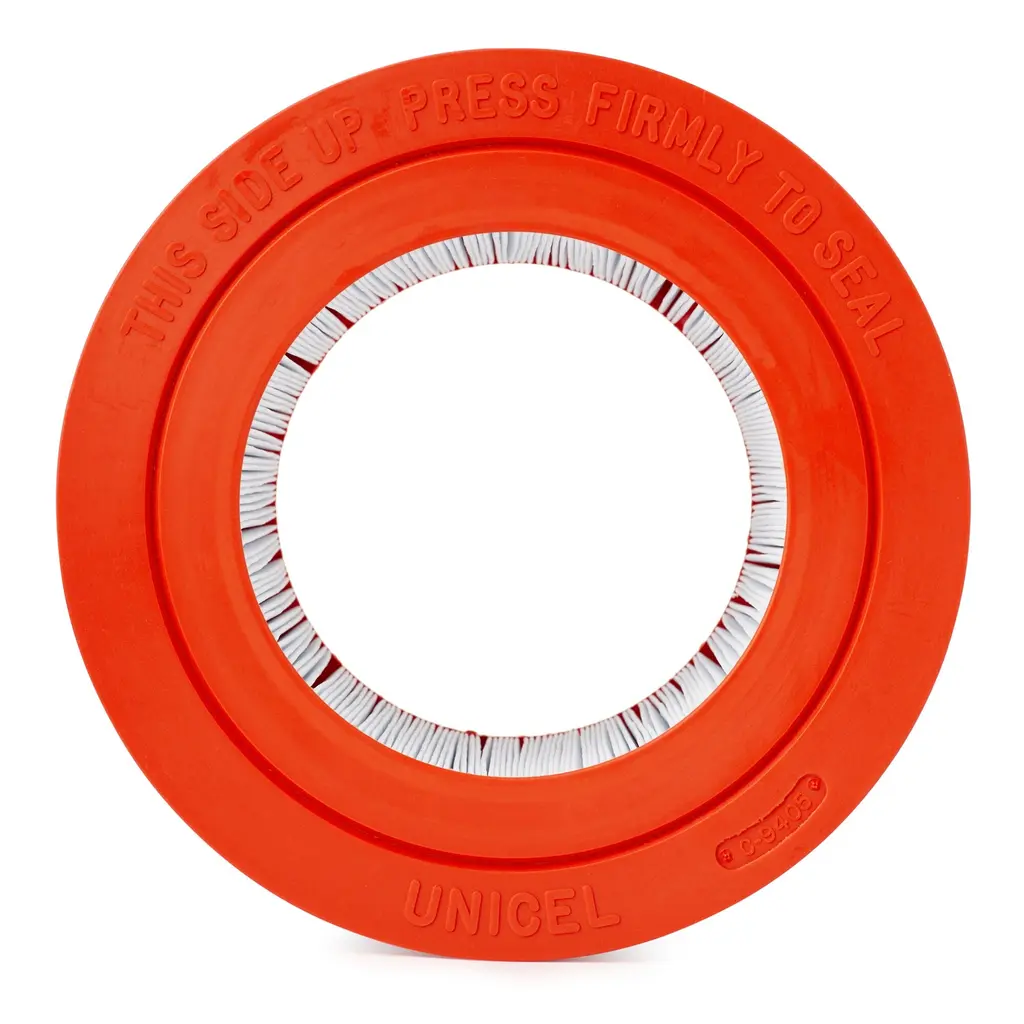 The **Unicel** Swimming Pool Filter is made from heavy duty polyester and is designed to last far longer than cheaper alternatives, while having more pleats to improve filtering capacity. *Unicel* filters are for the highest possible quality, allowing you to buy with confidence. Unicel cartridge filters feature reemay material that is sure to surpass all of your filtering expectations. Unicel has proven to be the cartridge of choice in the pool and spa industry by winning numerous awards for their excellent quality and performance. **Note: This product has no center core and orange end caps.** Filter Type: Cartridge Model Number: C9405 For use with: Dimension One Spas (1561 26) Endless Pools Pentair Pool Products (R173213) American Pool Products (59054000) Pac Fab Replacements (59054000) Filter type: Cartridge Sharp pleat folds maximize spacing between pleats Tough urethane end caps assure durability for the life of the cartridge Outside Diameter: 10.06 inches Length: 8.56 inches Width: 11 inches Height: 10.5 inches Top end cap: Open 6-inch inside diameter Bottom end cap: Open 6-inch inside diameter Pleat Count: 217 Dimensions (L x W x H): 8.56 x 11 x 10.5 inches