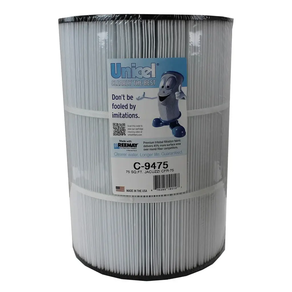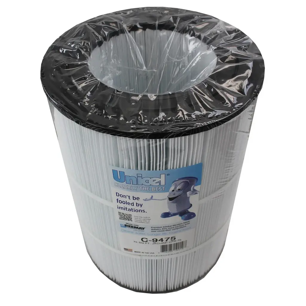 The **Unicel** Swimming Pool Filter is made from heavy duty polyester and is designed to last far longer than cheaper alternatives, while having more pleats to improve filtering capacity. *Unicel* filters are for the highest possible quality, allowing you to buy with confidence. **Note: OEM 4 oz. product has black end caps and 3 oz. product has slate blue end caps.** Unicel replacement filter grids are recognized as the best grid replacements in the industry. They have received numerous awards year after year for their performance and quality of products. We are an Authorized Unicel Dealer. An appropriate cleaning schedule will both help the performance of the filter and keep it from breaking for longer periods of time. However, it is not a permanent part and standard use will result in the need for a replacement. Make sure you go with the highest quality standard of replacement: Unicel. New *Unicel* C 9475 Replacement Filter Cartridge Industry's most complete line of replacement filter elements For use with: Spa Brothers (42 3509 00 R) Sharp pleat folds maximize spacing between pleats Tough urethane end caps assure durability for the life of the cartridge Outside Diameter: 9 15/16" Length: 14 1/4" Top End Cap: Open 5 13/16" Inside Diameter Bottom End Cap: Open 6 1/16" Inside Diameter Pleat Count: 193 Media: 4 oz Description: 75 sq. ft. Spa CFR 75 Part #: **C9475** 1 Year Manufacturer Warranty