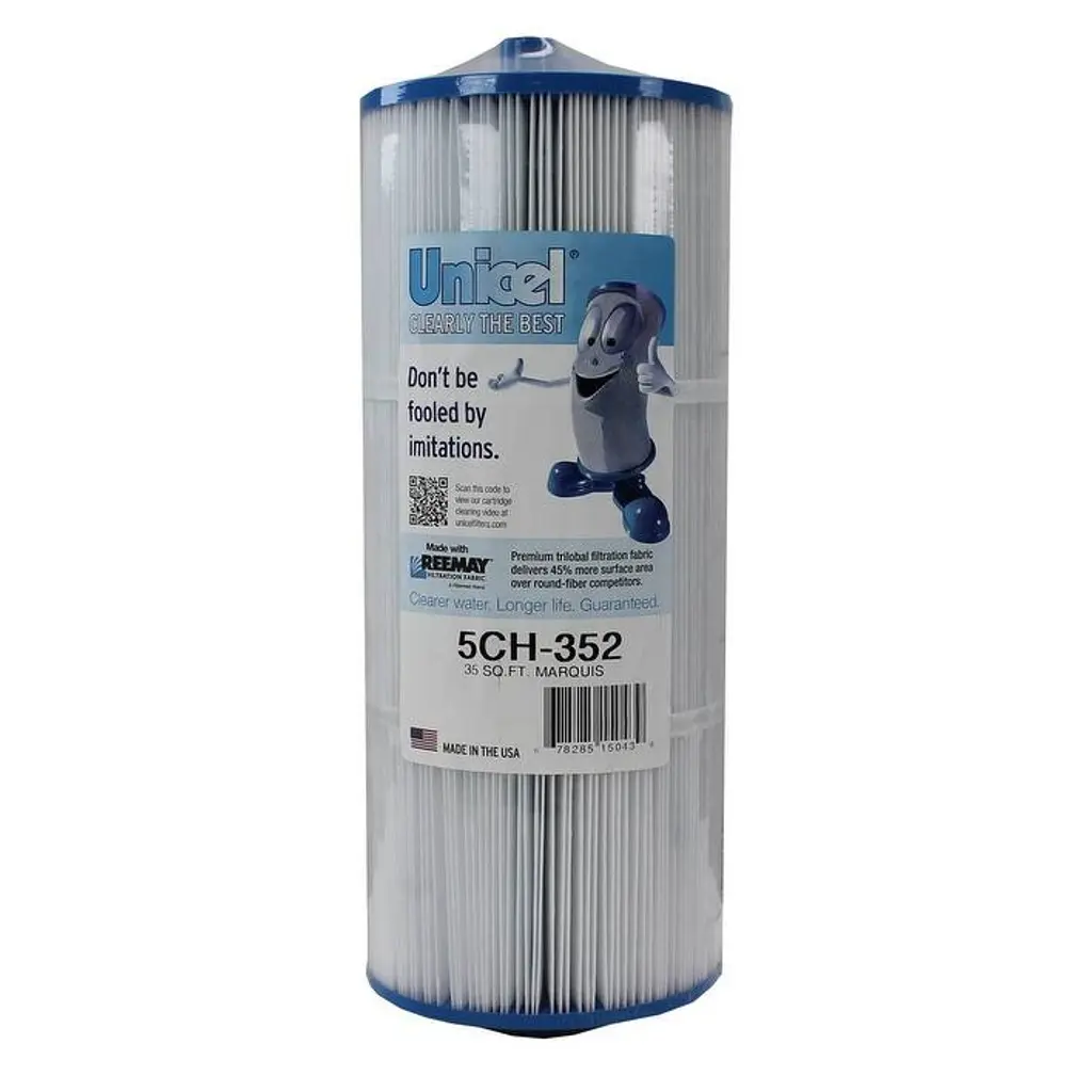 Keep your swimming pool clean and clear with the Unicel Marquis Spa Replacement Swimming Pool Filter Cartridges. These heavy-duty polyester filters are designed to last longer than cheaper alternatives and have more pleats to improve filtering capacity. With the highest possible quality, you can buy these replacement cartridges with confidence. This pack includes 4 brand new Unicel 5CH 352 Replacement Filter Cartridges, providing you with the industry's most complete line of replacement filter elements. These cartridges are specifically designed for use with Marquis Spas, including models 20042, 370 0242, 370 0243, and more. The sharp pleat folds maximize spacing between pleats for optimal filtration, while the tough urethane end caps ensure durability for the life of the cartridge. With an outside diameter of 5 3/16" and a length of 12 1/2", these cartridges are easy to install and fit perfectly. The top end cap features a bar handle for convenient handling, and the bottom end cap has a 2" male thread/MPT for easy attachment. With a pleat count of 151 and a media weight of 3 oz, these cartridges offer exceptional filtration performance. The Unicel Marquis Spa Replacement Swimming Pool Filter Cartridges come with a 1-year manufacturer warranty, guaranteeing their quality and reliability. Upgrade your pool filtration system today and enjoy crystal clear water all season long.Features: