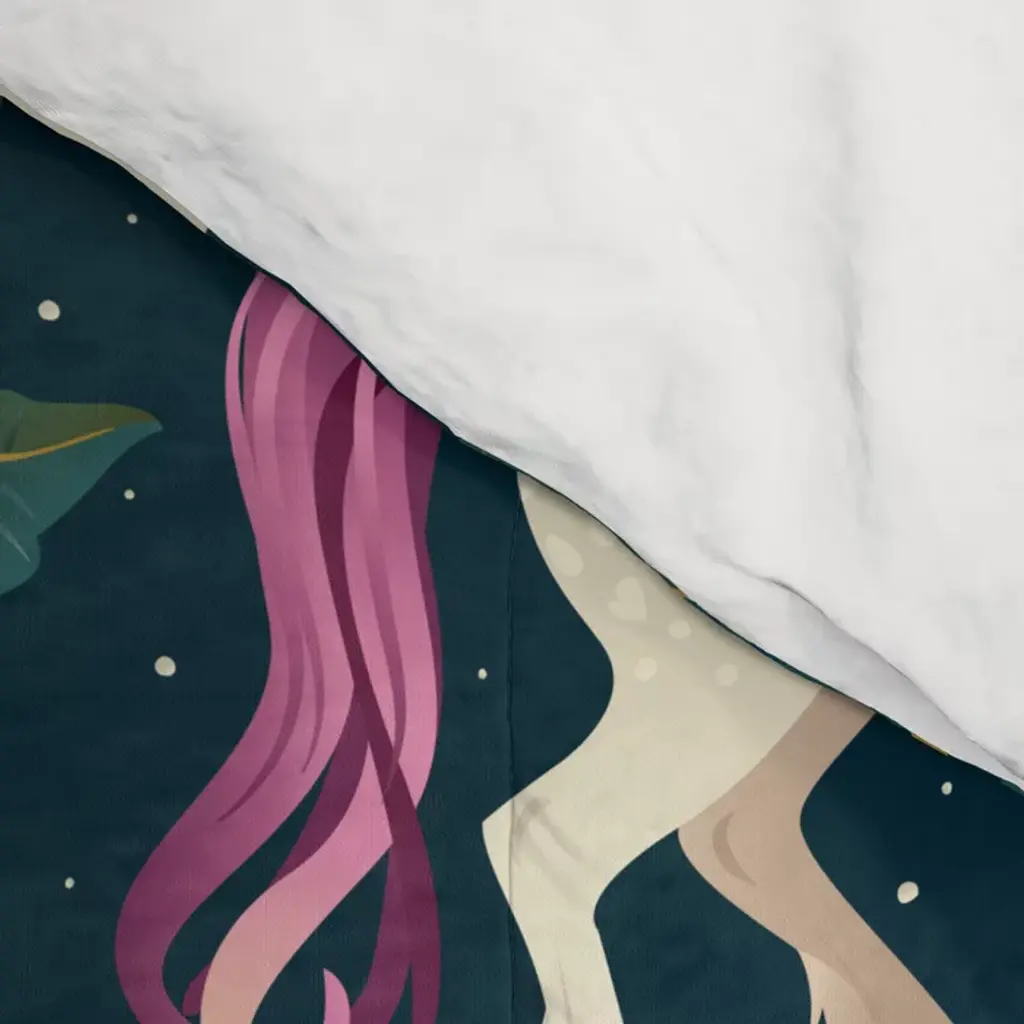 Unicorns On A Dark Background With A Fairy Forest Comforter