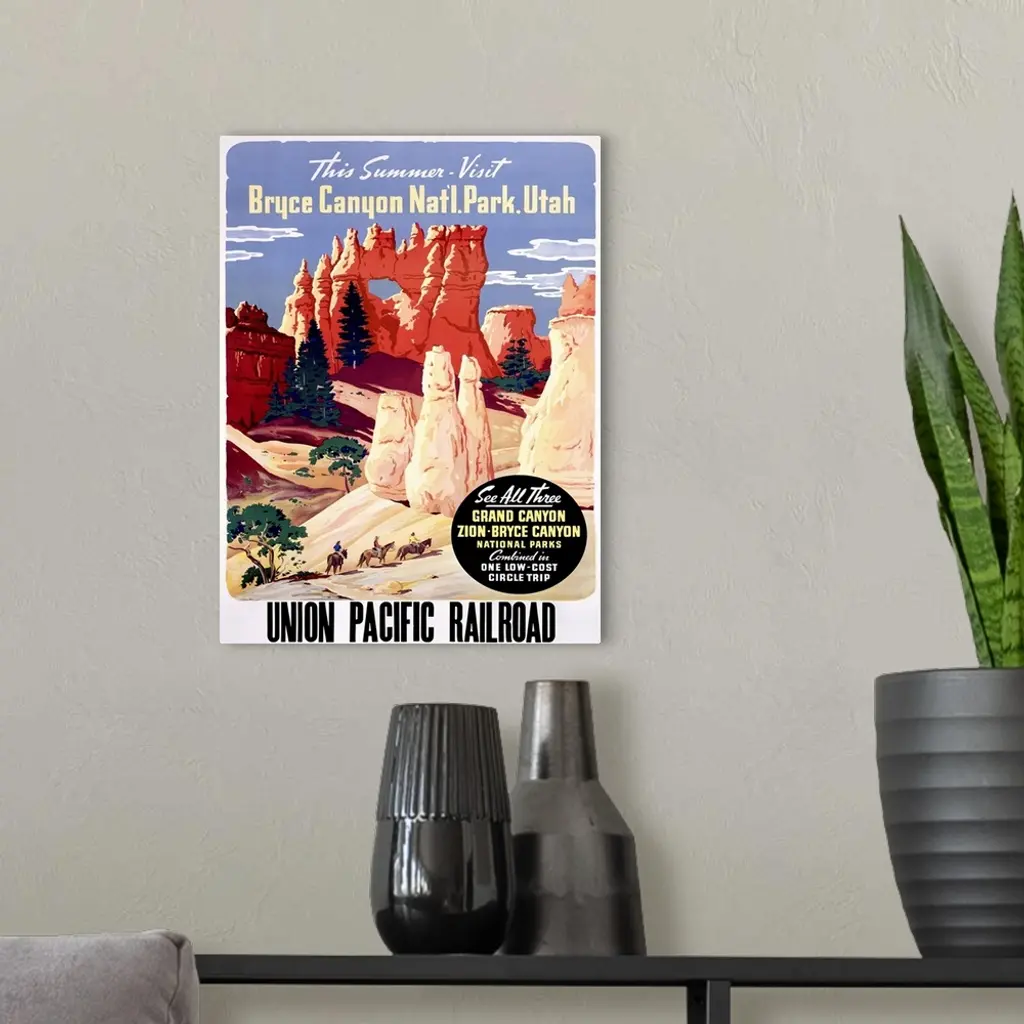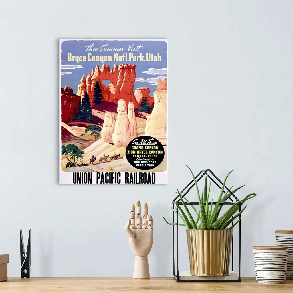 Vintage American Travel Poster, Bryce Canyon National Park Utah, Union Pacific Railroad