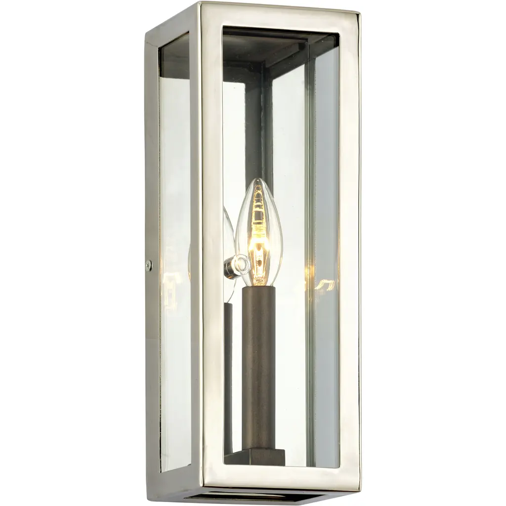 Union Square features a reproduction gas lantern inspiration The one-light bath & vanity - wall sconce features a Stainless Steel finish that complements the natural polished material and clear flat glass panels. They are open on the top and bottom, providing character and visual appeal to the form.