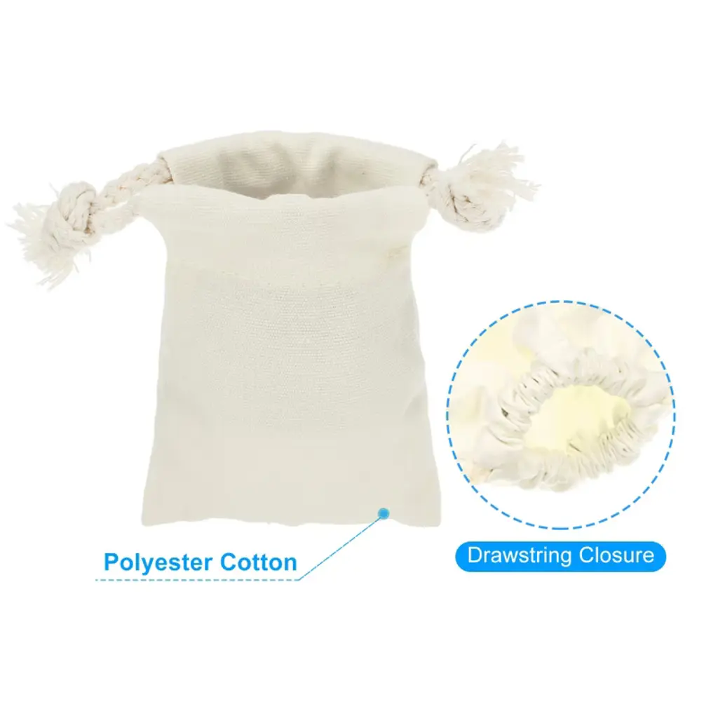 Made of 100% cotton, this bag is dustproof, washable, and durable. Its simple design adds elegance and style. The drawstring closure allows for easy access and storage, allowing it to be hung or stored flat in a drawer, shelf, or closet. Cotton Bags can also be used to organize and protect items in a bag or suitcase while traveling or on the go. Suitable for storing crafts, coins, snacks, fruit, coffee beans, and soap. It's widely used at home, in the office, for travel, camping, hiking, and on business trips.