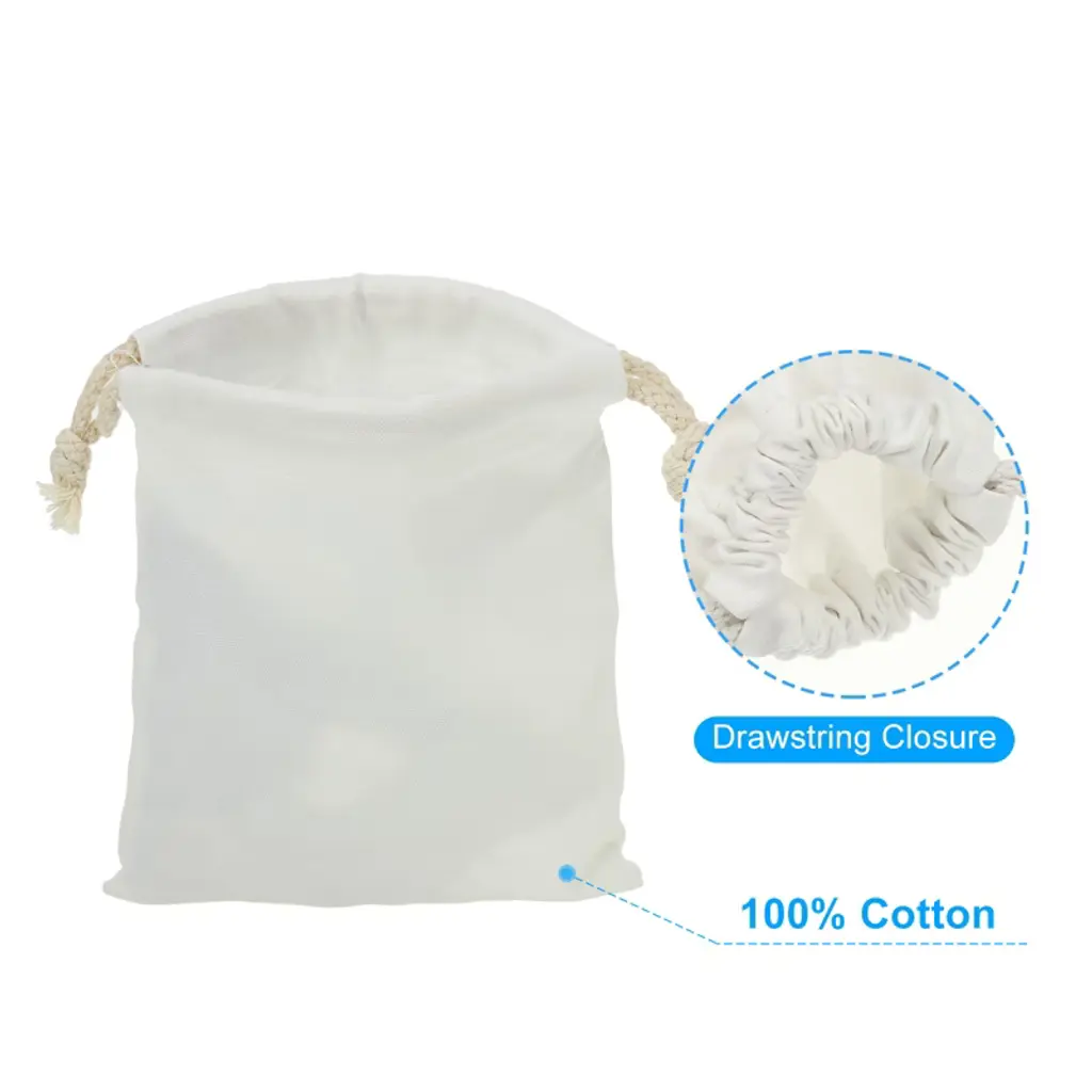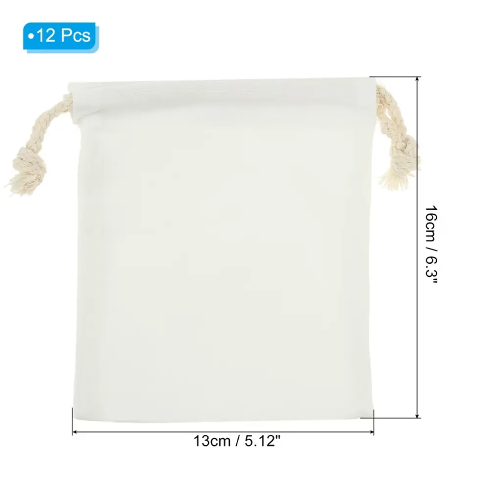 Made of 100% cotton, this bag is dustproof, washable, and durable. Its simple design adds elegance and style. The drawstring closure allows for easy access and storage, allowing it to be hung or stored flat in a drawer, shelf, or closet. Cotton Bags can also be used to organize and protect items in a bag or suitcase while traveling or on the go. Suitable for storing crafts, coins, snacks, fruit, coffee beans, and soap. It's widely used at home, in the office, for travel, camping, hiking, and on business trips.