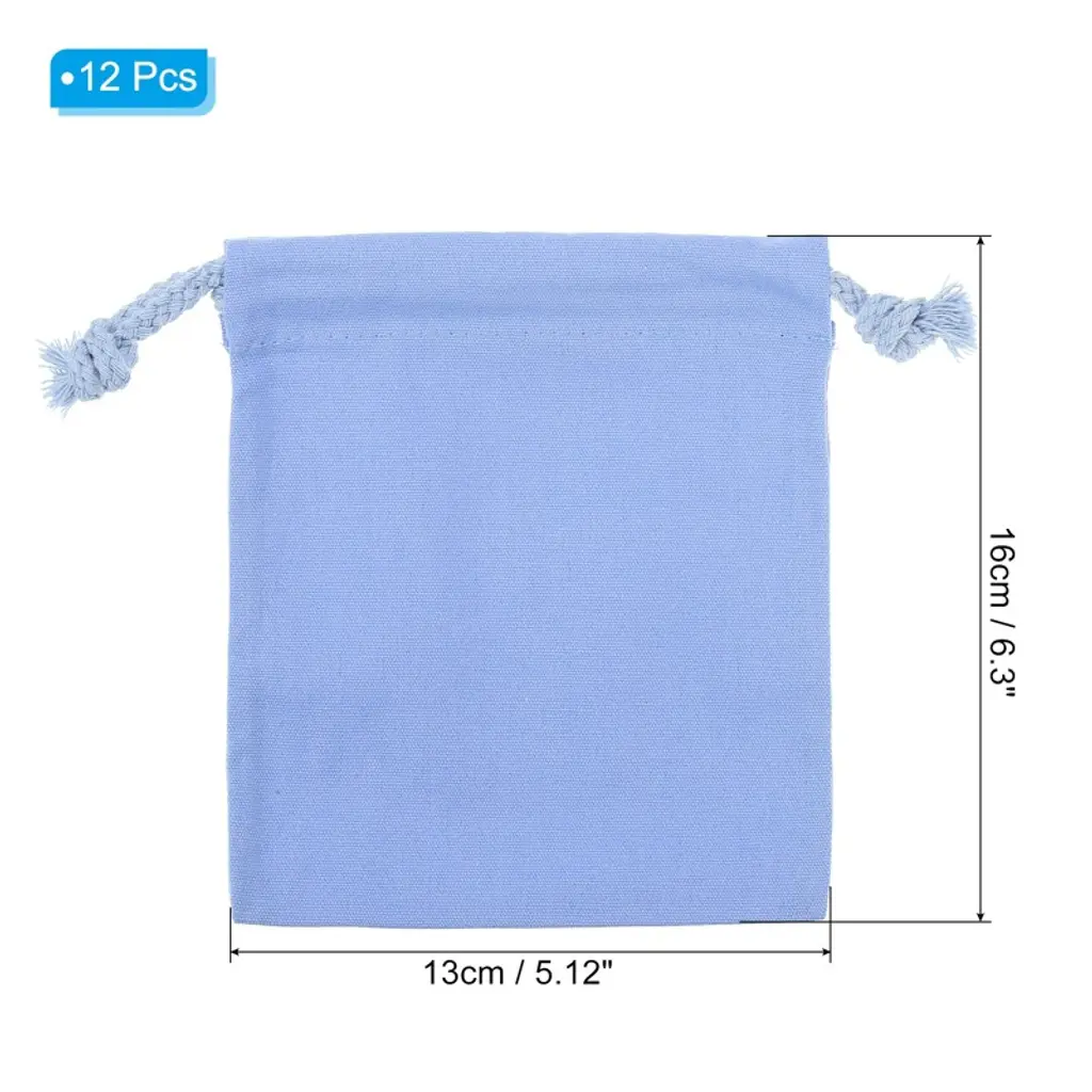 Unique Bargains 100% Cotton Reusable Washable Dust Drawstring Bags 12 Pcs Blue