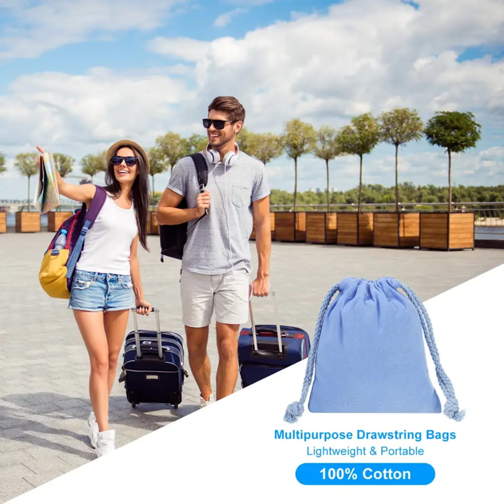 Made of 100% cotton, this bag is dustproof, washable, and durable. Its simple design adds elegance and style. The drawstring closure allows for easy access and storage, allowing it to be hung or stored flat in a drawer, shelf, or closet. Cotton Bags can also be used to organize and protect items in a bag or suitcase while traveling or on the go. Suitable for storing crafts, coins, snacks, fruit, coffee beans, and soap. It's widely used at home, in the office, for travel, camping, hiking, and on business trips.