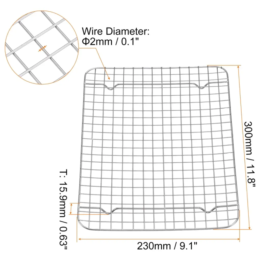Unique Bargains 304 Stainless Steel Cooling Roasting Baking Bbq Grill Net 2 Pcs 11.8" X 9.1"