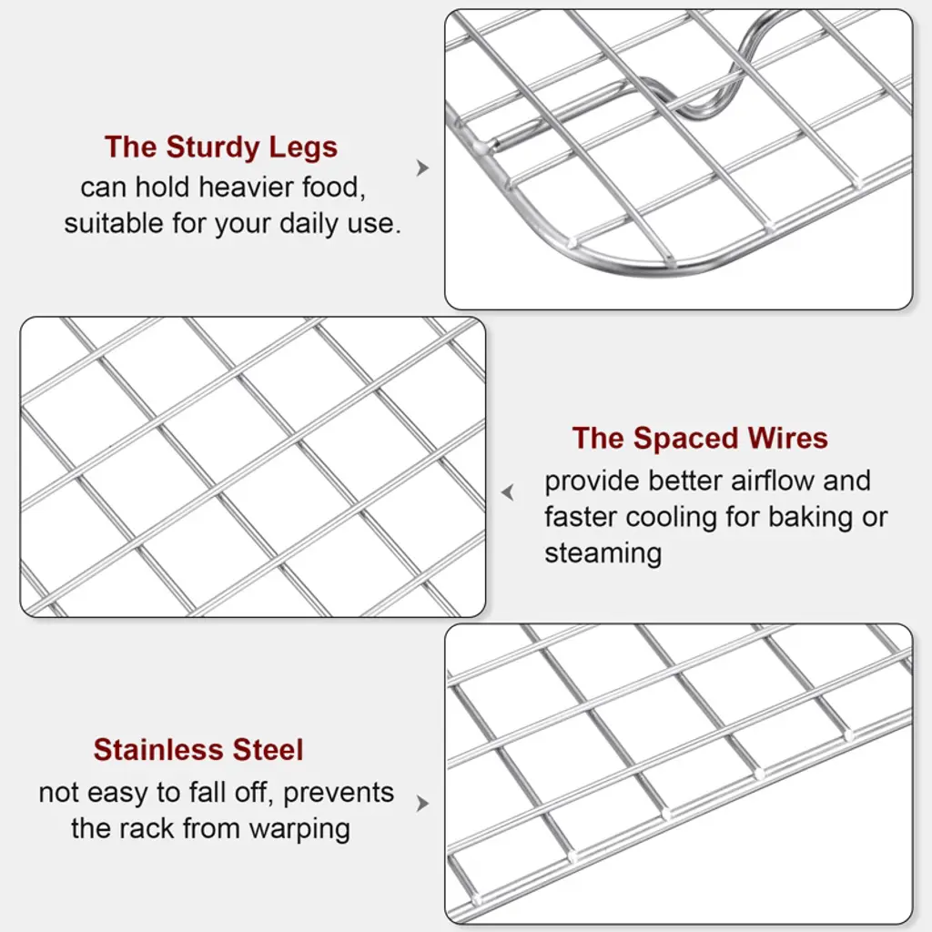 This square BBQ grill net is crafted from stainless steel, ensuring strength and durability while effectively resisting rust and corrosion for a long-lasting life. Designed with supporting feet, it keeps food stable on the grill. The rack is easy to clean, either by rinsing with water or placing it in the dishwasher to save time and effort. Suitable for various environments like bakeries, kitchens, restaurants, and outdoor BBQs, it is versatile for roasting, cooking, baking, and draining food in the oven. Ensure you select the correct size and shape before purchase.