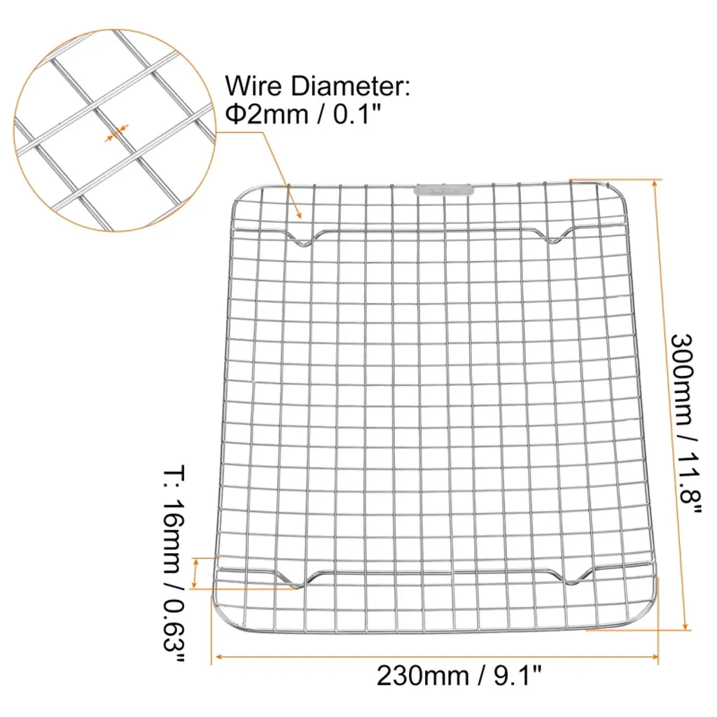 This square BBQ grill net is crafted from stainless steel, ensuring strength and durability while effectively resisting rust and corrosion for a long-lasting life. Designed with supporting feet, it keeps food stable on the grill. The rack is easy to clean, either by rinsing with water or placing it in the dishwasher to save time and effort. Suitable for various environments like bakeries, kitchens, restaurants, and outdoor BBQs, it is versatile for roasting, cooking, baking, and draining food in the oven. Ensure you select the correct size and shape before purchase.