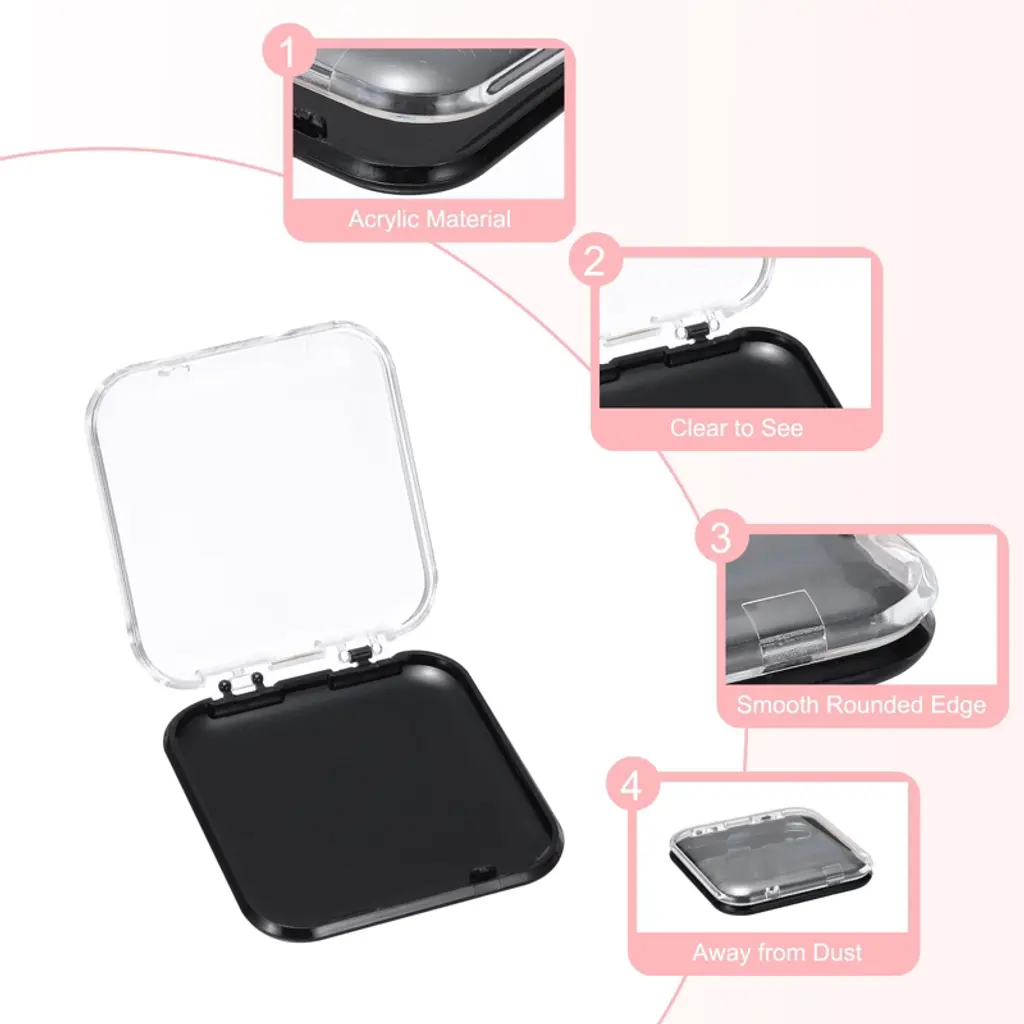 The quantity of these press-on nail storage boxes is sufficient to meet the needs of daily use, storage, or display. Keep your nails well organized, away from dust, and easy to carry. The rounded adhesive double-sided strips are easy to peel. The lids of all nail art boxes are transparent, so you can quickly see what's inside. The different base colors of the boxes can match your fake nails with other themes and make them look more exquisite to meet the needs of displaying various styles of wearable nails. Acrylic material has high strength and weather resistance, can be used for a long time, and is not easily deformed or damaged. The surface is smooth, easy to wipe, and convenient for daily cleaning and maintenance. These nail display boxes are suitable for portable nail displays and can also be used for dispensing and storing other small accessories. You can also do some DIY and design them to your liking, change the look of the box, or start your own small nail art business.