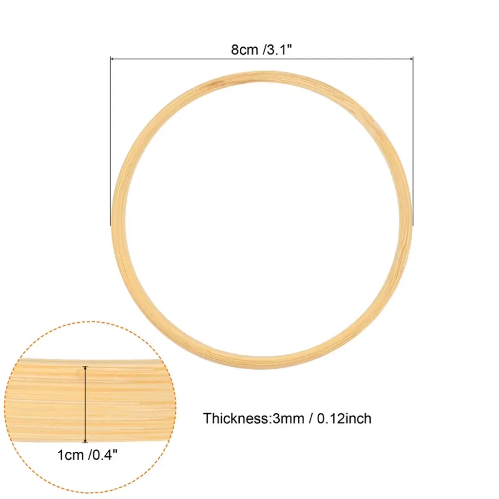 The floral hoop is made of bamboo material with a smooth surface, lightweight, not easy to deform, beautiful, firm, and durable. You can wrap wire, flowers, leaves, fabrics, ribbons, and other materials around the bamboo ring to make a wedding wreath, dream catcher, wind chime, handicraft, etc. It can be hung on the door, wall, or other places to decorate your home. Before placing the order, please confirm the size.
