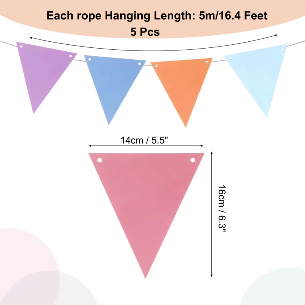 Unique Bargains Cardstock Hanging Pennant Banner Flags 12 Pcs 16 Ft Rope 5 Sets Colorful