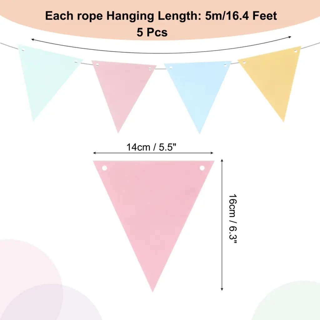 Unique Bargains Cardstock Hanging Pennant Banner Flags 12 Pcs 16 Ft Rope 5 Sets Multicolor