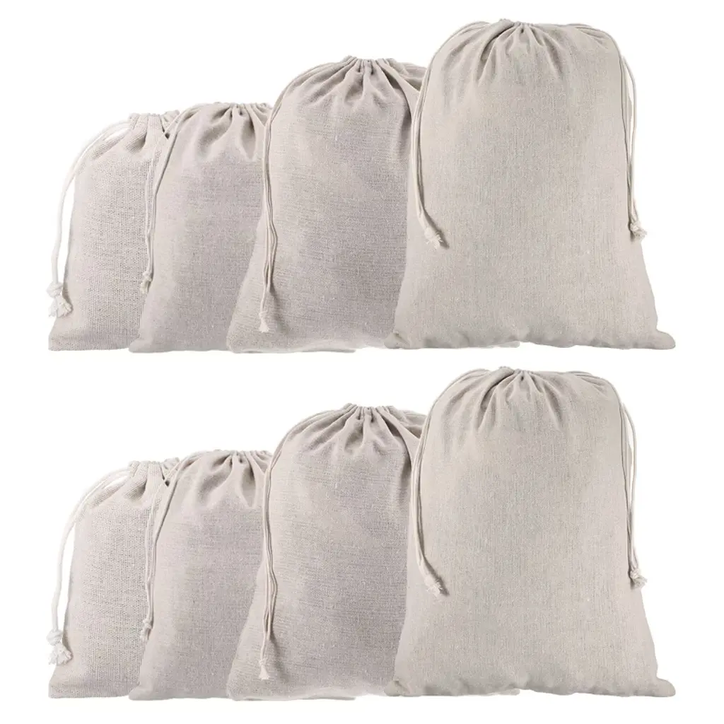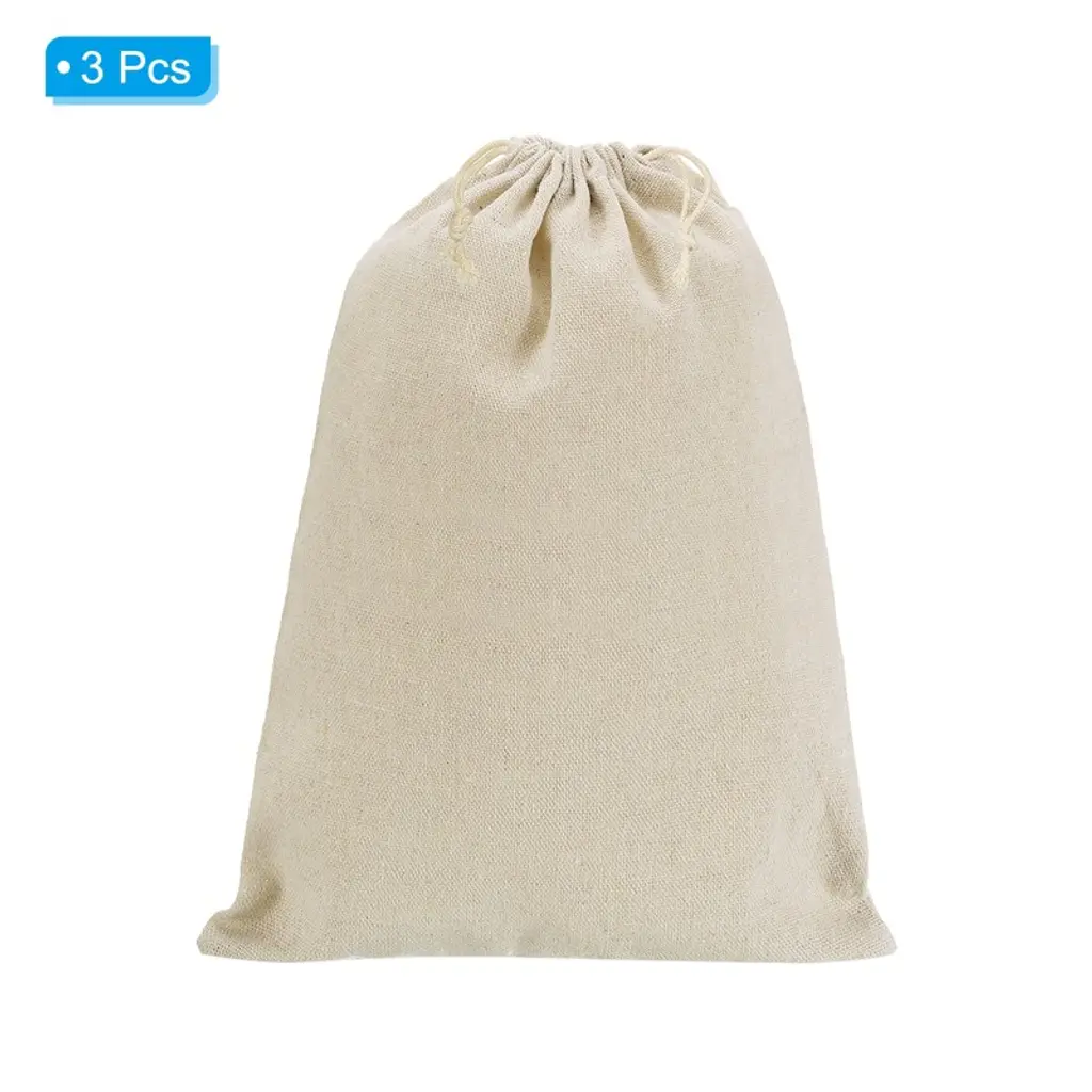 Unique Bargains Cotton Linen Money Sacks Bag Gift Bag With Drawstring 3 Pcs 16"x12"