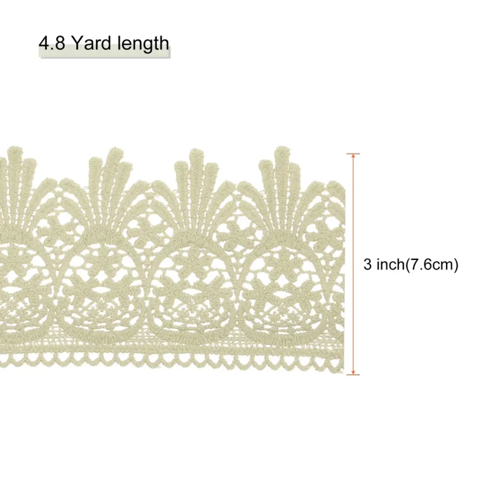 Unique Bargains Cotton Vintage Hollow Lace Decorative Ribbon Trim 4.8 Yards X 3 Inch Beige