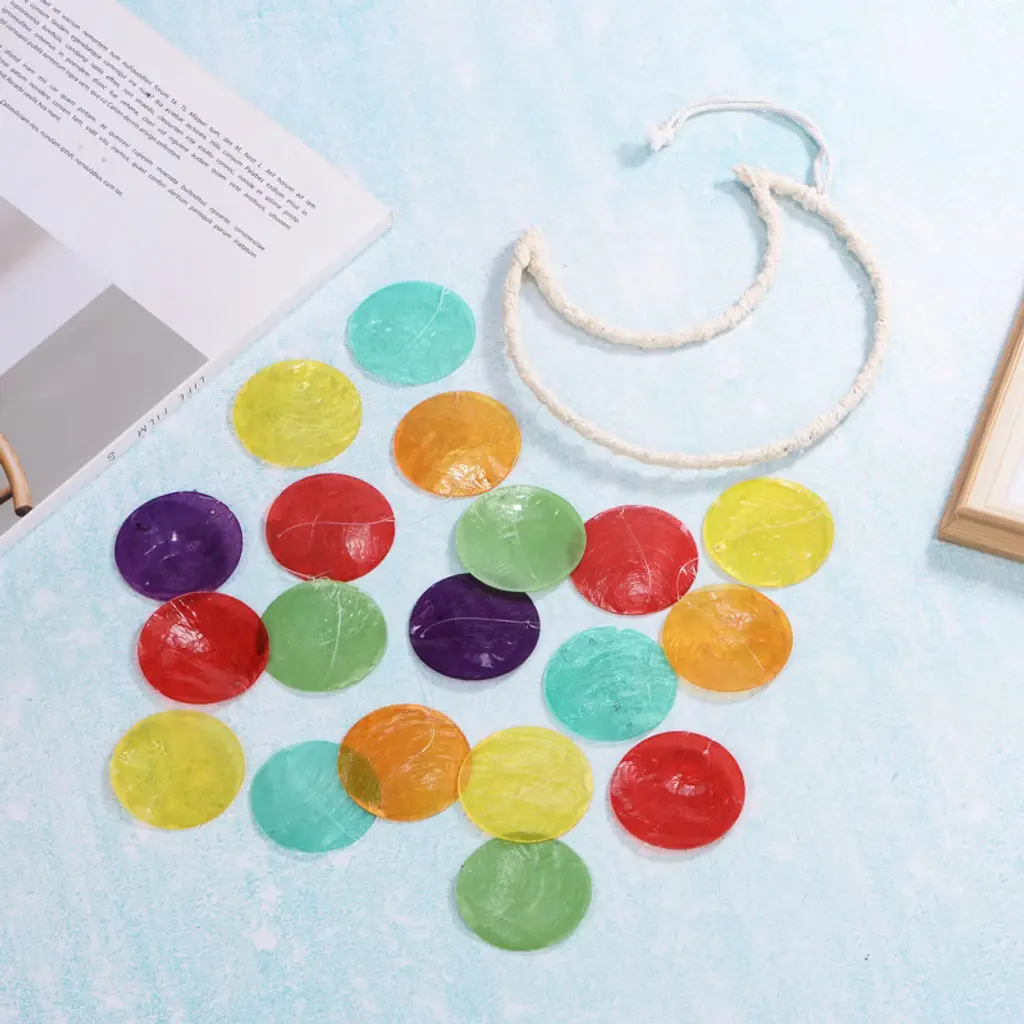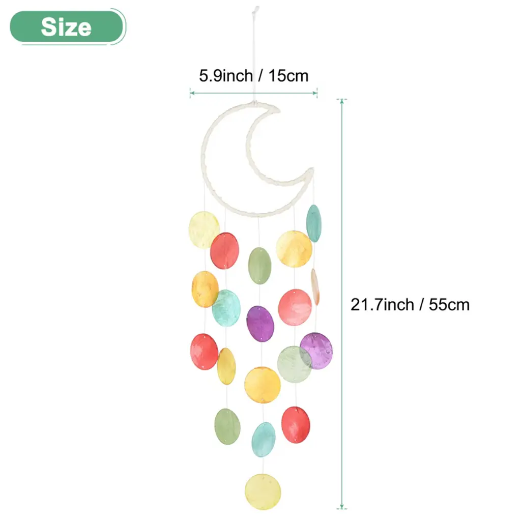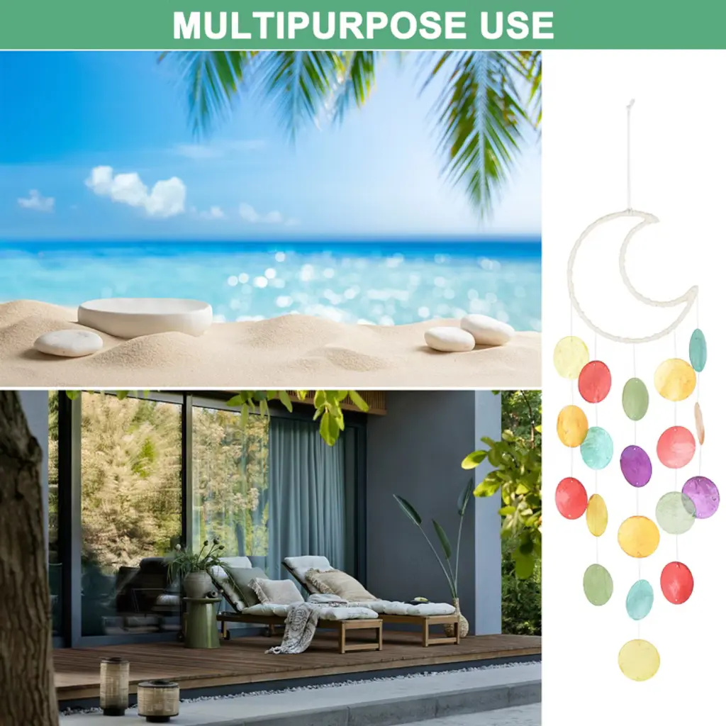 This shell wind chime is a decorative item ideal for outdoor spaces like gardens and patios. Crafted from sea shell pieces, it features durable cords and a coastal-inspired design that captures ocean beauty. The chime enhances outdoor settings by adding a calming ambiance with its soothing sounds. To enjoy the best sound, hang it where it can catch the wind easily. Regular cleaning of the shell pieces is recommended to maintain their luster and prevent debris buildup.