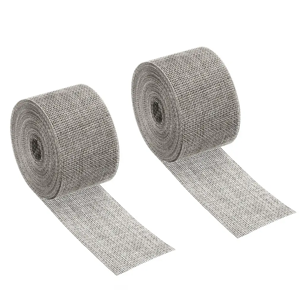 Unique Bargains Diy Crafts Decoration Soft Burlap Fabric Wired Ribbon 2 Pcs Green