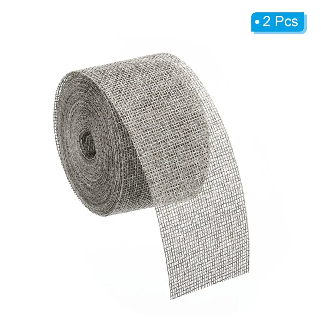 Unique Bargains Diy Crafts Decoration Soft Burlap Fabric Wired Ribbon 2 Pcs Grey