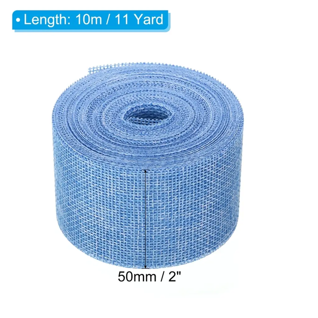 Unique Bargains Diy Crafts Decoration Soft Burlap Fabric Wired Ribbon 2 Pcs Light Blue