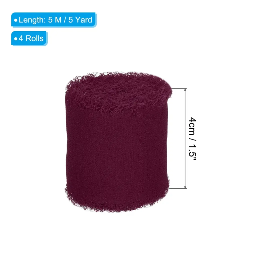 Unique Bargains Diy Crafts Party Gift Wrapping Fringe Chiffon Silk Ribbon 4 Rolls Burgundy
