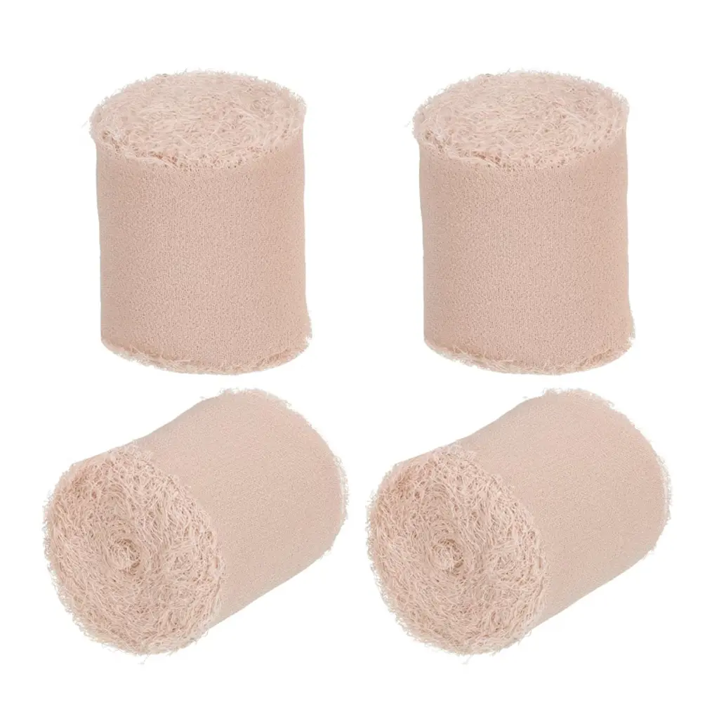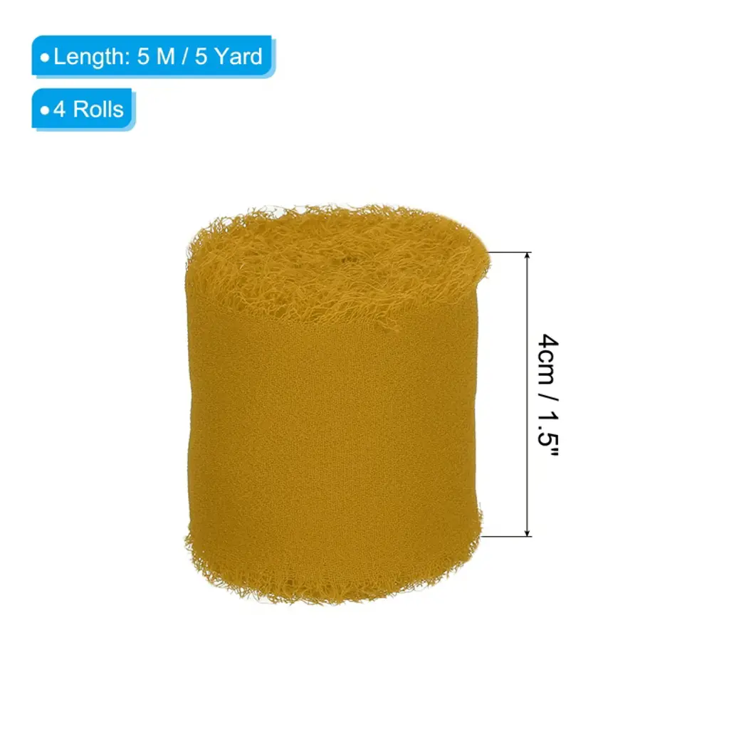 Unique Bargains Diy Crafts Party Gift Wrapping Fringe Chiffon Silk Ribbon 4 Rolls Gold