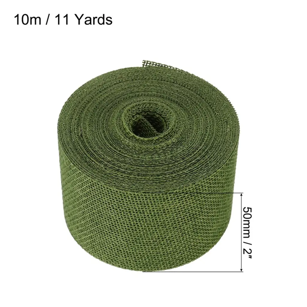 Unique Bargains Diy Party Roll Wrapping Decoration Soft Burlap Fabric Wired Ribbon Dark Green
