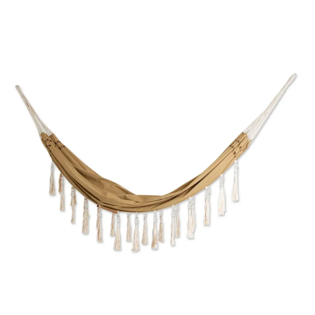 The spacious hammock allows you to lie on it and enjoy the gentle breeze. It can relieve your mental stress and replenish your physical strength. It is an interesting and unique way to bring a new experience of comfort and quality to everyone. It is suitable for outdoor/indoor use, terrace, garden, backyard, poolside or balcony to enjoy time under the bright sunshine. It is also a unique gift for family and friends.