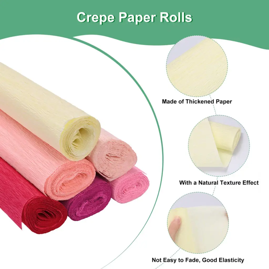 These crepe paper flowers are versatile and suitable for various occasions such as weddings, theme parties, and holidays like Easter and Christmas. They can be used in DIY crafts to create a unique romantic atmosphere. The streamers are soft and flexible, allowing for easy cutting and shaping into flowers or other decorations to enhance any space. Made from thickened paper, they have a natural texture, are durable, and resistant to tearing and fading. Care should be taken to confirm the desired size and color before purchase, as the package is not wrapped in a whole roll.