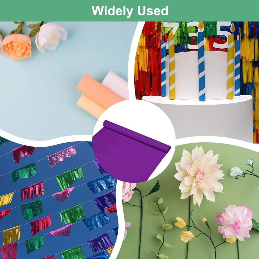 These crepe paper flowers are versatile and suitable for various occasions such as weddings, theme parties, and holidays like Easter and Christmas. They can be used in DIY crafts to create a unique romantic atmosphere. The streamers are soft and flexible, allowing for easy cutting and shaping into flowers or other decorations to enhance any space. Made from thickened paper, they have a natural texture, are durable, and resistant to tearing and fading. Care should be taken to confirm the desired size and color before purchase, as the package is not wrapped in a whole roll.