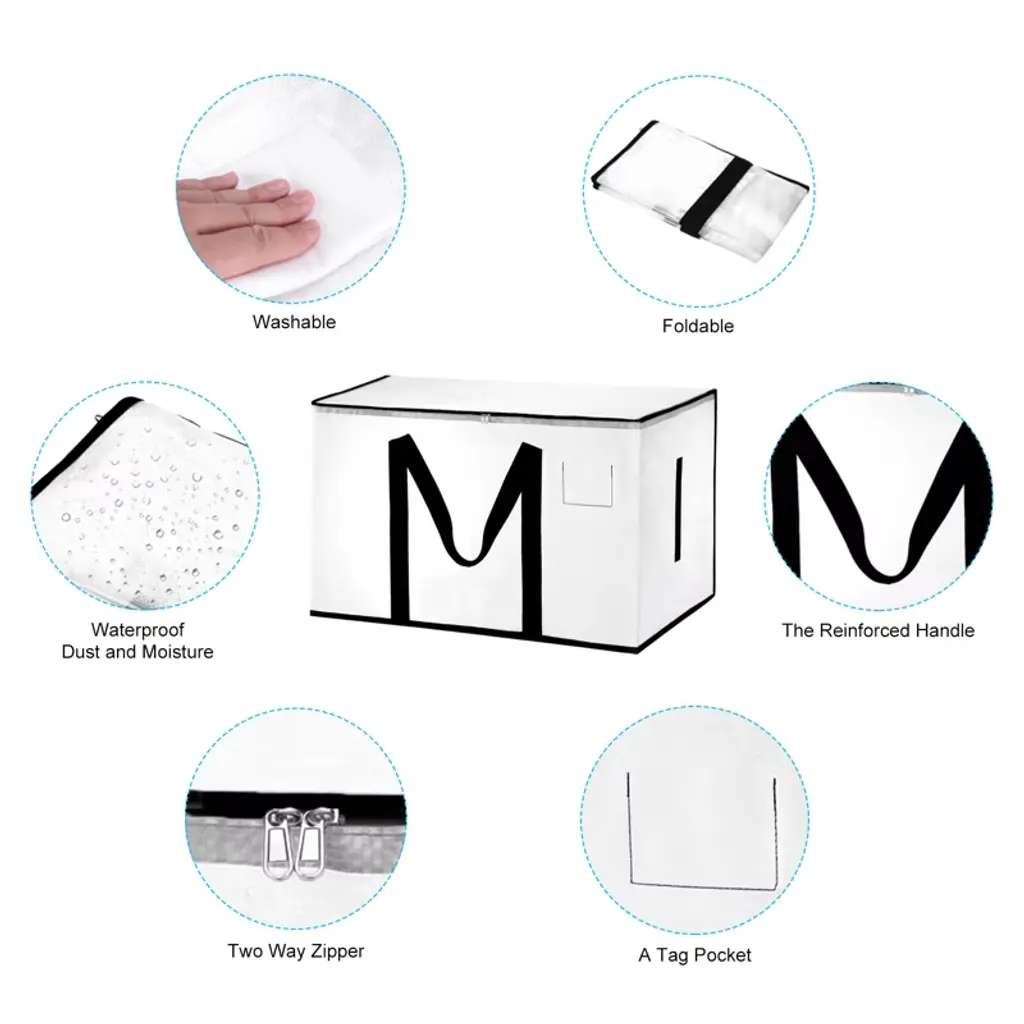 These extra-large moving bags are designed to replace traditional moving boxes and organizers. Made from durable, odorless, and washable materials, they provide excellent protection for your clothes against dust and moisture. The bags feature reinforced handles to prevent tearing and are lightweight and portable, allowing for easy storage when not in use. A convenient tag pocket allows for easy luggage marking, and the two-way zipper ensures a secure closure. Ideal for storage, space-saving solutions, camping, and holiday packing.