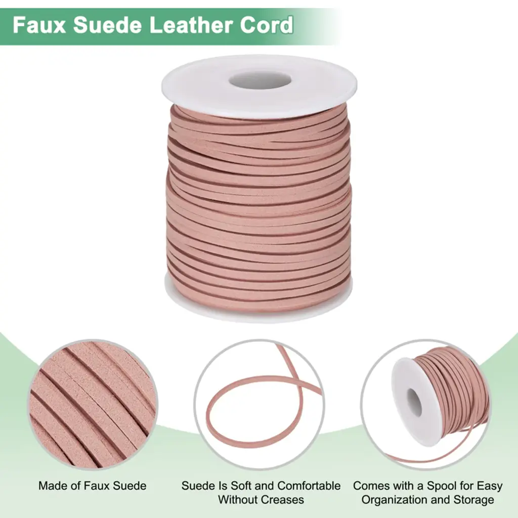 This suede leather cord is widely used in making necklaces, bracelets, hair accessories, lace knots and other accessories. It can also be used for DIY crafts, or as accessories for crafts. It can also be used for hanging and beading, making tassels, dream catchers, etc. This thin leather lace comes with a spool for easy organization and storage, without tangling and clutter, and it is easy to cut, you can easily cut it into the length you need to complete your craft creation. The leather laces for crafts are made of faux suede, strong and durable, not easy to break and fade, suede leather is soft and comfortable, no creases, you can easily braid, knot, etc. This flat suede cord has a variety of colors for you to choose from. Please confirm the color and quantity you need before placing an order.