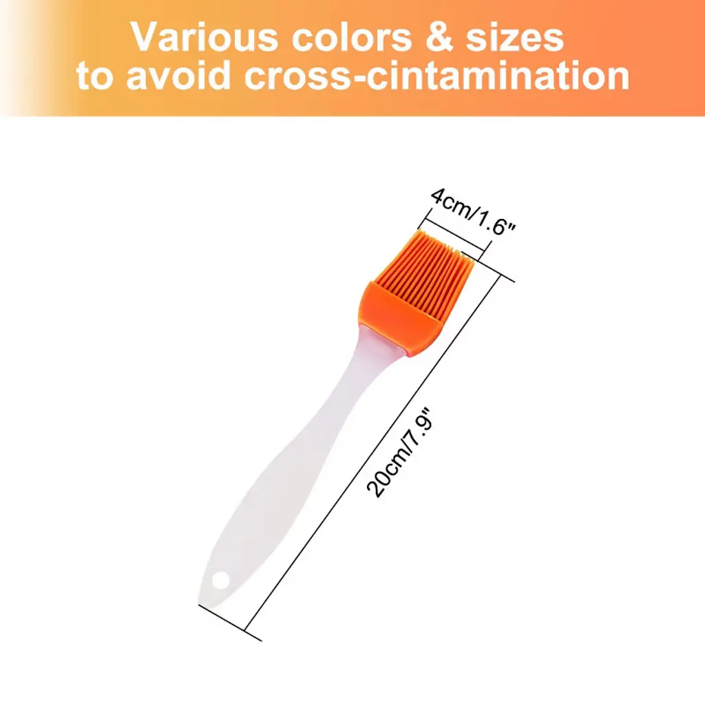 Great Silicone material that works great on a variety of foods, perfect to use for BBQ meat, cakes, eggs, and marinades, you can use it in barbecue, frying, salad, and baking, which can create more pleasure in cooking. Unlike the traditional brush, Silicone bristle can help you to baste food evenly and spread oil effortlessly, butter, and marinades. The bristles are so flexible that they gently glide over the surface without deflating the food or scratching your pan. Use the differently colored baste brushes for different, The different colored brushes will help you keep track of which oil you use. Oil Brushes with long handles are perfect for barbecue use, preventing your fingers from getting hurt by heat. These cooking tools are very easy to clean, fit for hand washing, and dishwasher safe, dry much more quickly, bristles do not shed and don't remain greasy after cleaning. A silicone brush is designed with a hanging hole in the end, easy to store, which helps to save a lot of space for your kitchen, keeping the kitchen desk in order. Heat resistant up to 450°, easy to clean, and won't stick to food, heat resistant does not mean heatproof, so please be careful use. The silicone basting brush won't become stiff even if you leave it aside for a long time.