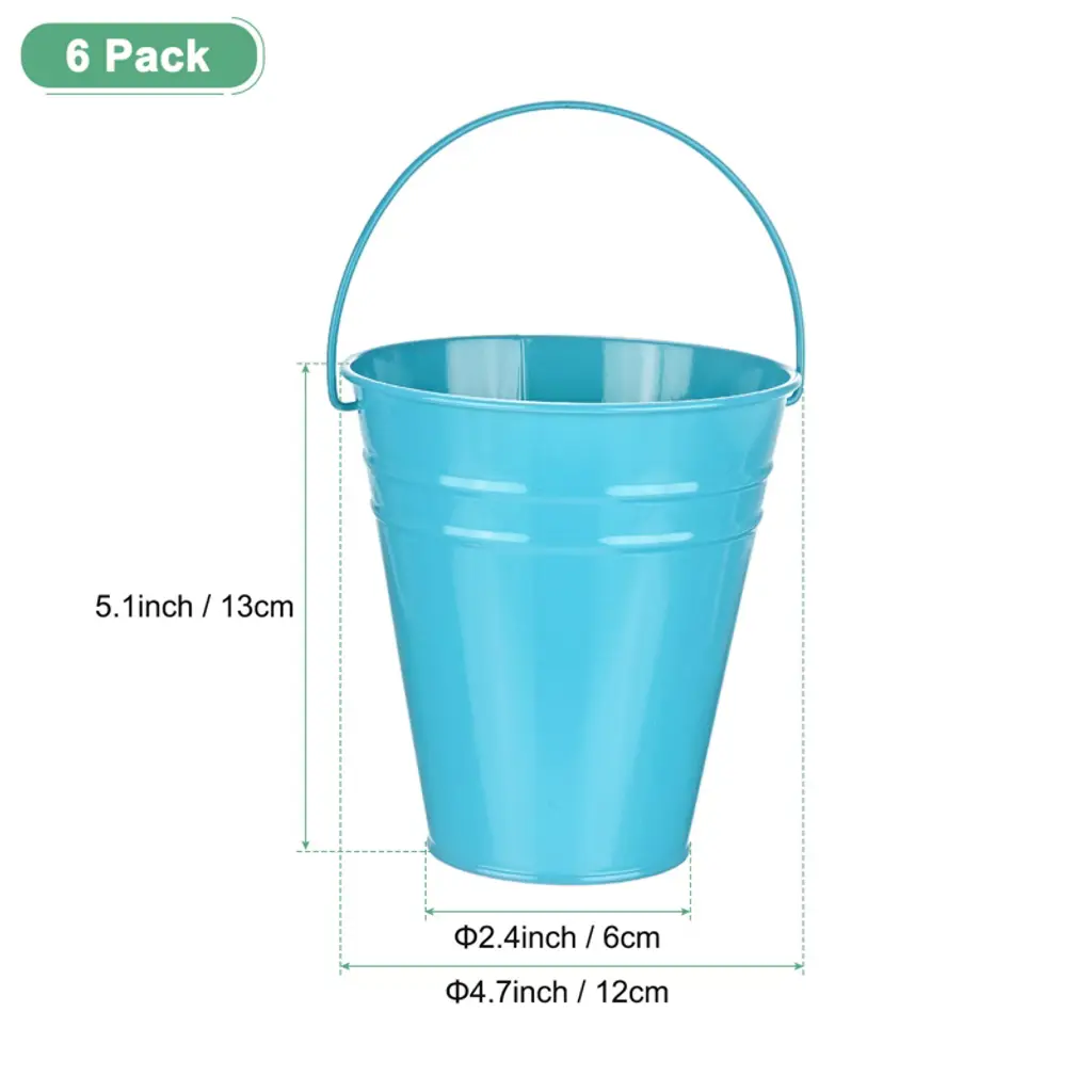 These small metal buckets with handles are versatile containers suitable for gardening, planting flowers, storing tools, and organizing small items. Made from galvanized iron, they are resistant to corrosion and offer longevity. The sturdy handle allows for easy carrying and hanging. Ensure to add drainage holes if using as plant containers and clean regularly to maintain their condition.