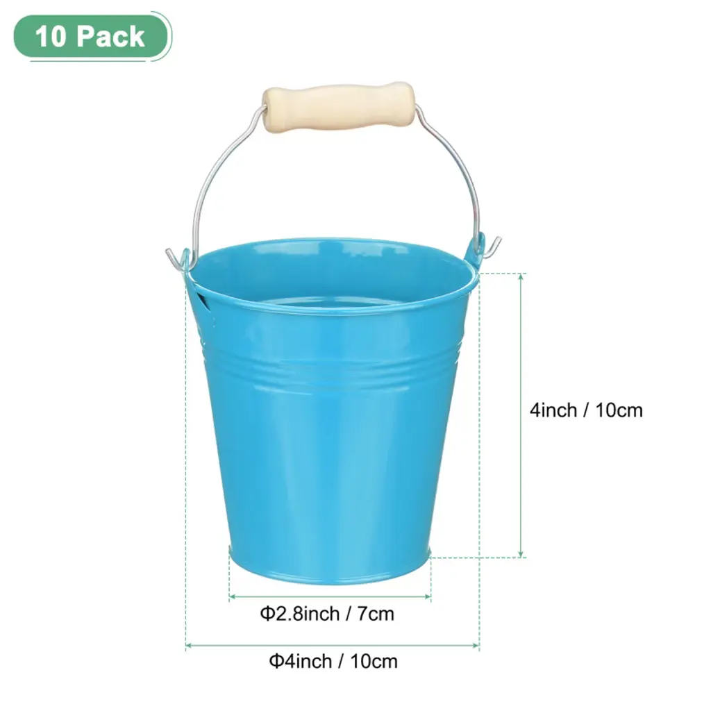 Unique Bargains Galvanized Metal Rustic Durable Multipurpose Small Metal Bucket 10 Pcs Blue