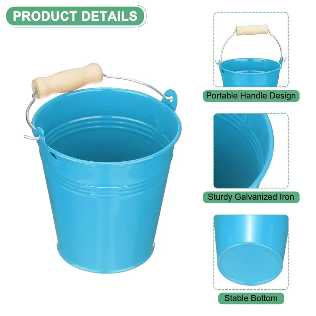 These small metal buckets with handles are versatile containers suitable for gardening, planting flowers, storing tools, and organizing small items. Featuring a classic and durable design, they are crafted from galvanized metal, ensuring resistance to corrosion and longevity. The sturdy handle provides easy carrying and hanging options for various uses. The compact size is ideal for small-scale gardening tasks. When using galvanized buckets for gardening, ensure proper drainage holes are added if using them as plant containers. Regularly clean and dry the buckets to prevent rust formation and avoid leaving them in prolonged contact with moist soil to maintain their condition.