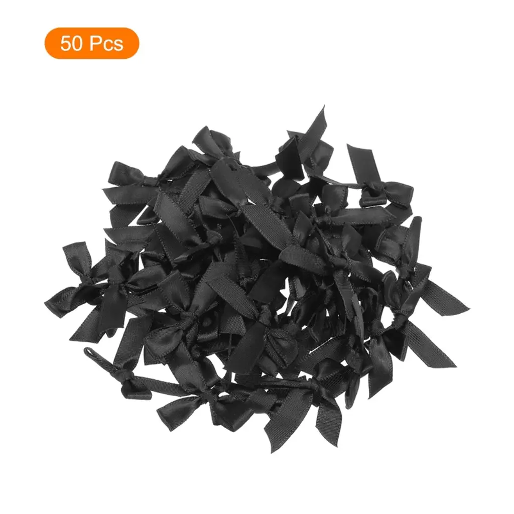 Unique Bargains Gift Packaging Accessories Mini Ribbon Bows For Fabric Craft Diy 50 Pcs Black