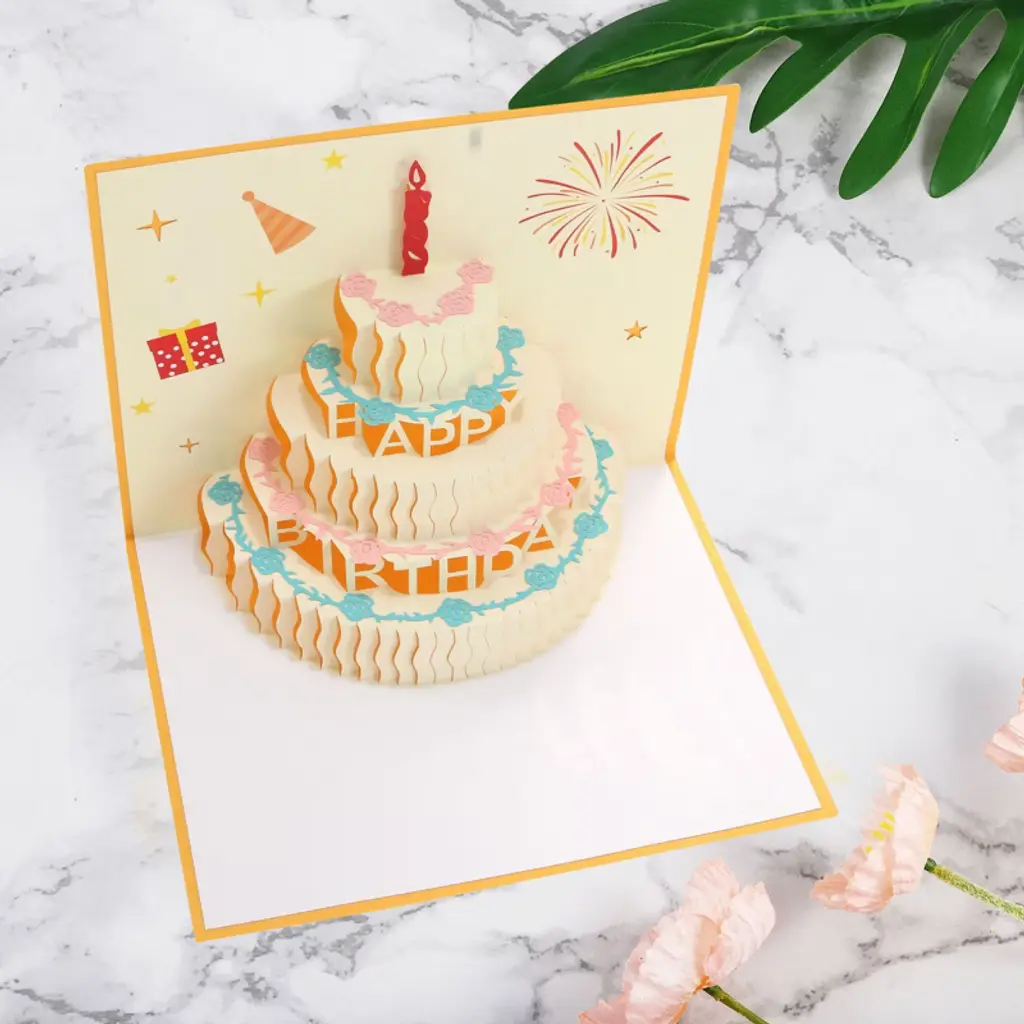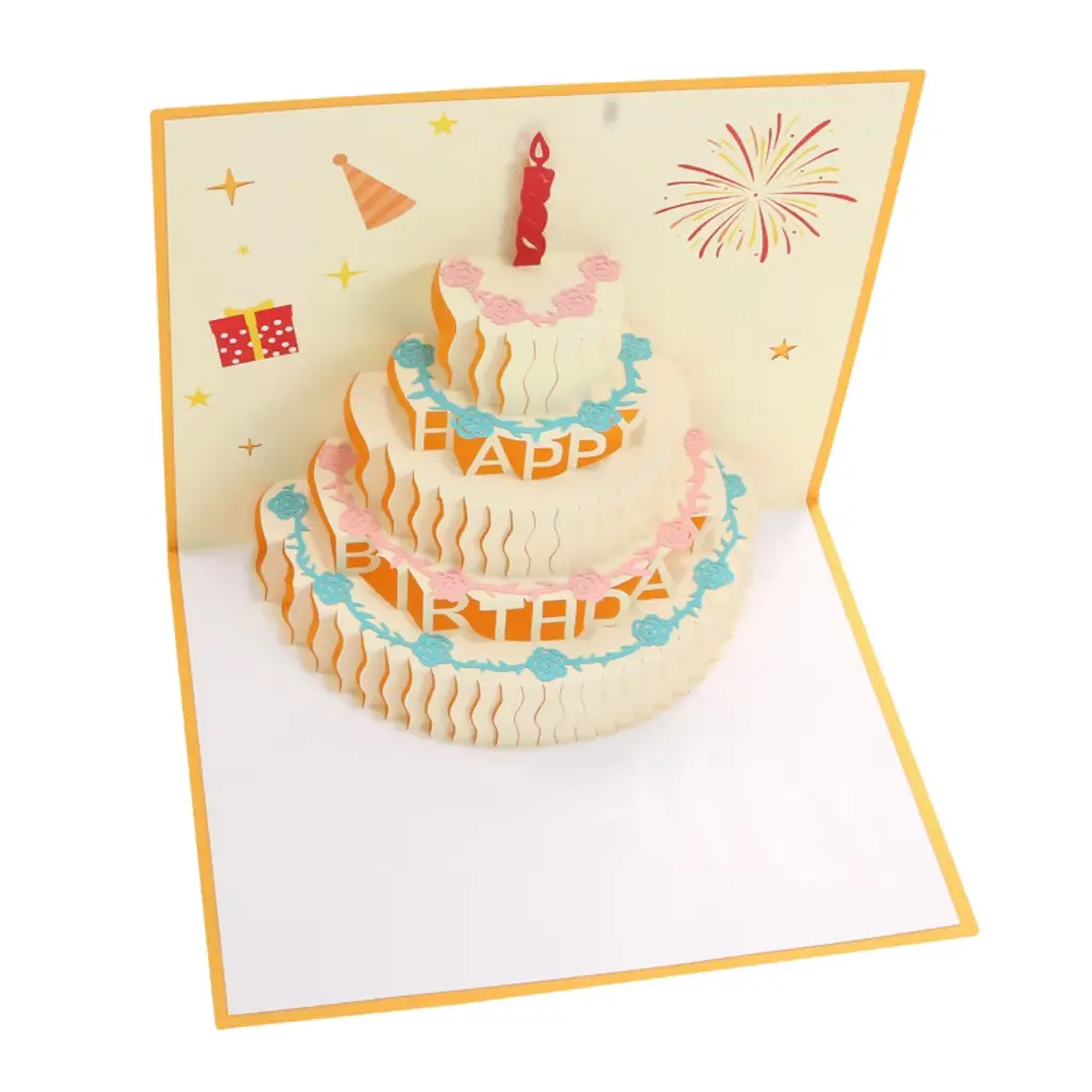 This handcrafted 3D birthday card features a delightful pop-out cake design with gold foil numbers, making it a special gift for birthdays. Suitable for all occasions, it is perfect for friends and family members. The card comes with a blank greeting card and an envelope, allowing you to write personal messages. Its durable craftsmanship ensures lasting three-dimensionality. Explore more styles in the store.