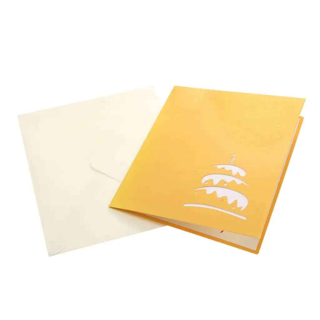 Unique Bargains Handcrafted 3D Cake Design Greeting Cards With Envelope Gold