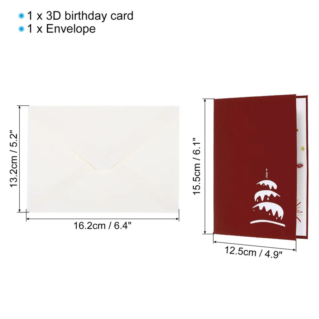 Unique Bargains Handcrafted 3D Cake Design Greeting Cards With Envelope Red
