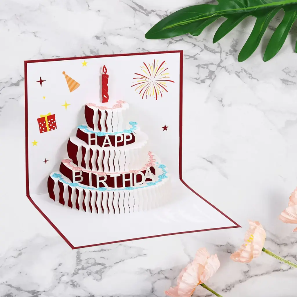 This handcrafted 3D birthday card features a delightful pop-out cake design with gold foil numbers, making it a special gift for birthdays. Suitable for all occasions, it is perfect for friends and family members. The card comes with a blank greeting card and an envelope, allowing you to write personal messages. Its durable craftsmanship ensures lasting three-dimensionality. Explore more styles in the store.