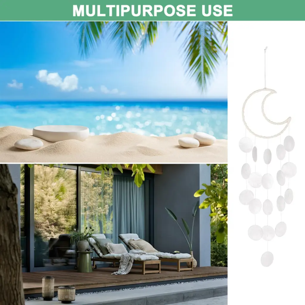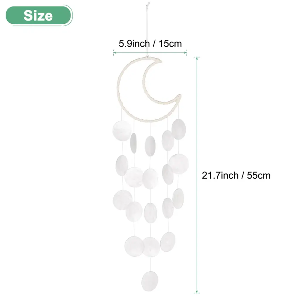 This shell wind chime is a decorative item ideal for outdoor spaces like gardens and patios. Crafted from sea shell pieces, it features durable cords and a coastal-inspired design that captures ocean beauty. The chime enhances outdoor settings by adding a calming ambiance with its soothing sounds. To enjoy the best sound, hang it where it can catch the wind easily. Regular cleaning of the shell pieces is recommended to maintain their luster and prevent debris buildup.