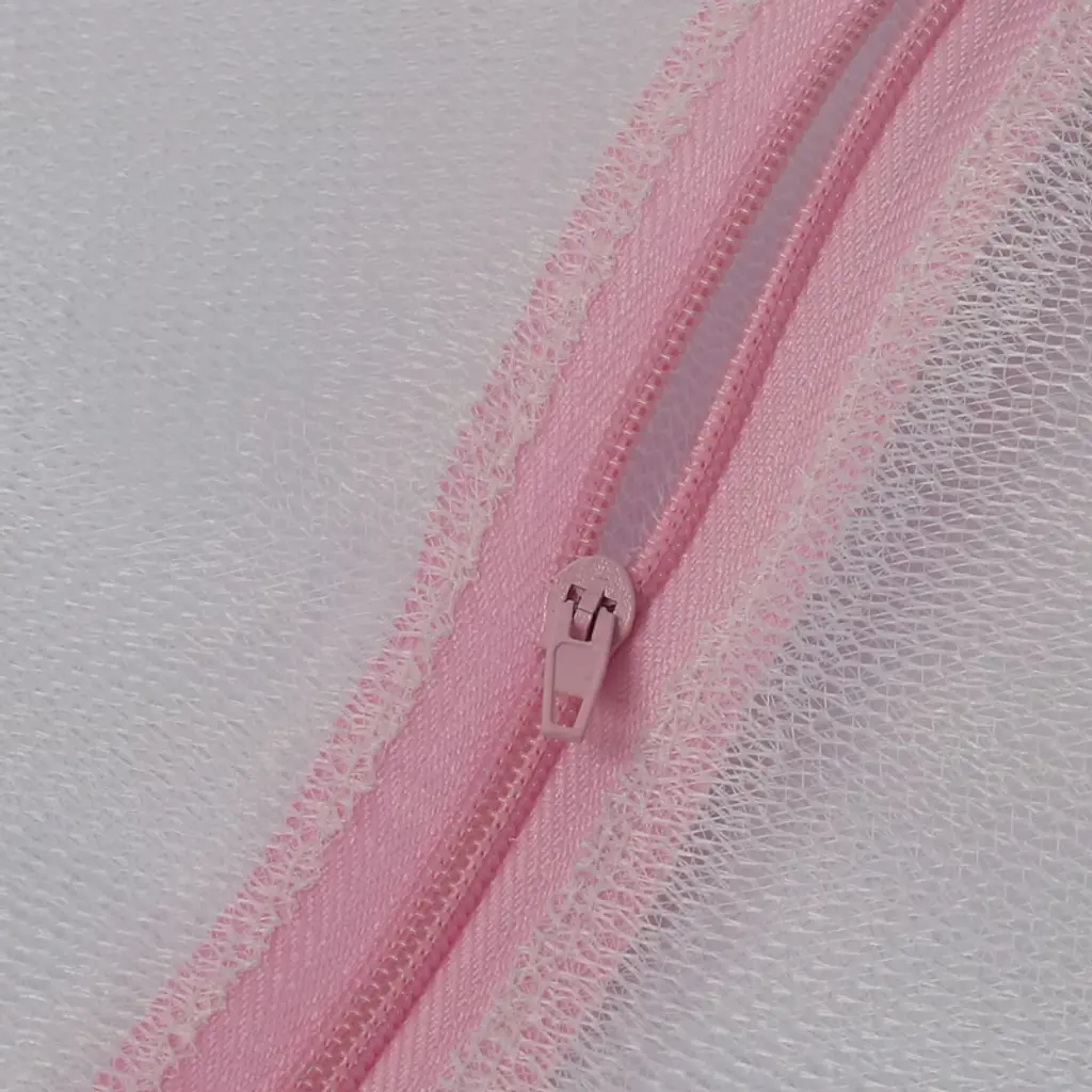 Unique Bargains Home Medium Mesh Laundry Nylon Laundry Bags 15.7" X 11.8" Pink White 3 Pcs